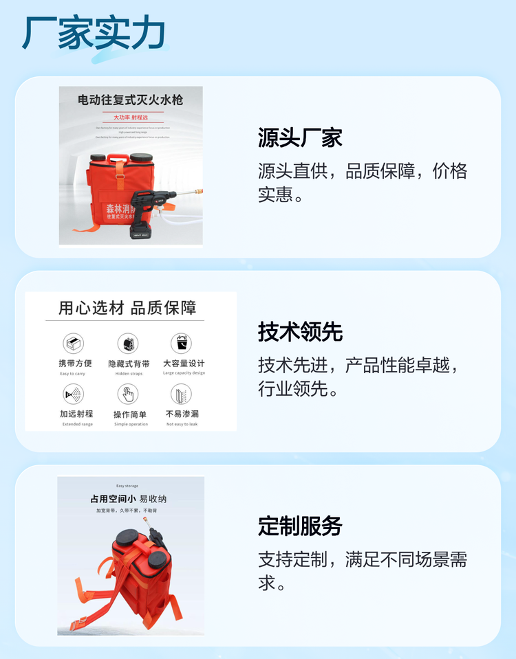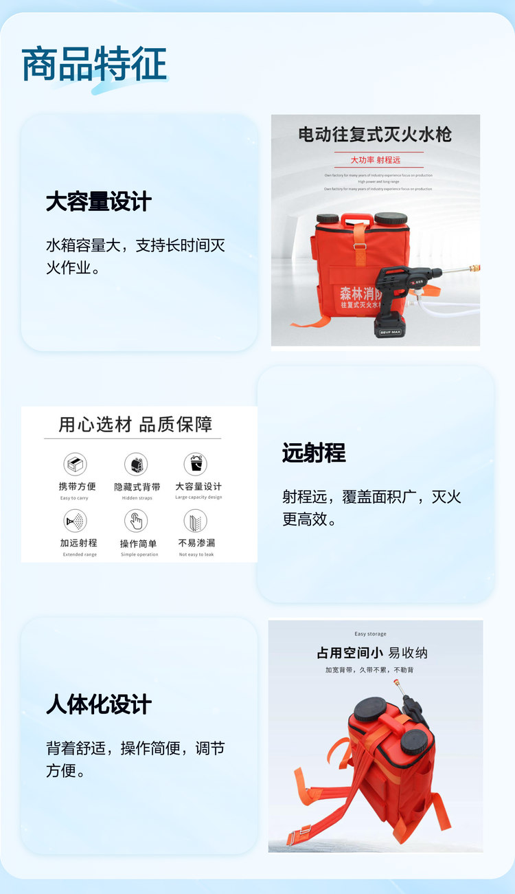 司耀消防电动水枪 锂电池驱动 往复式设计 森林消防适用 射程远大容量