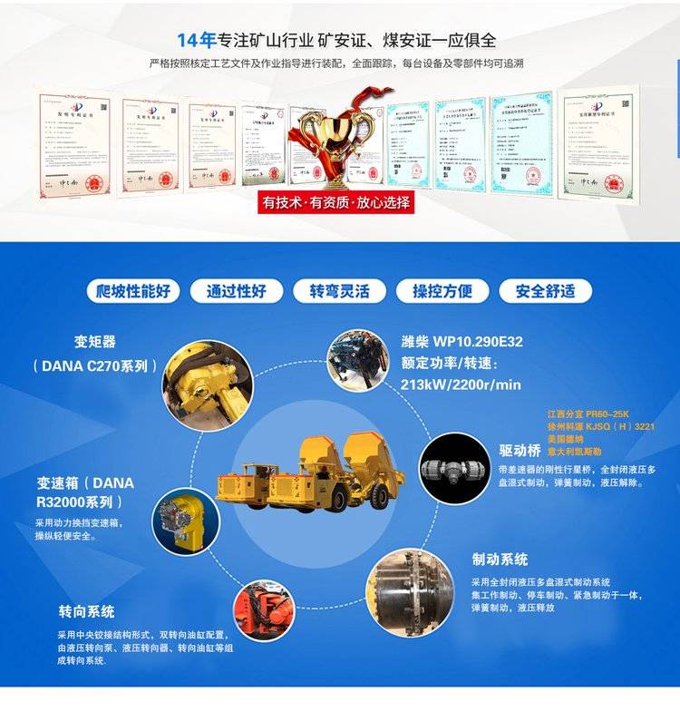 铰接式地下矿用运输车井下运矿卡车矿安证柴油自卸矿山巷道出渣车