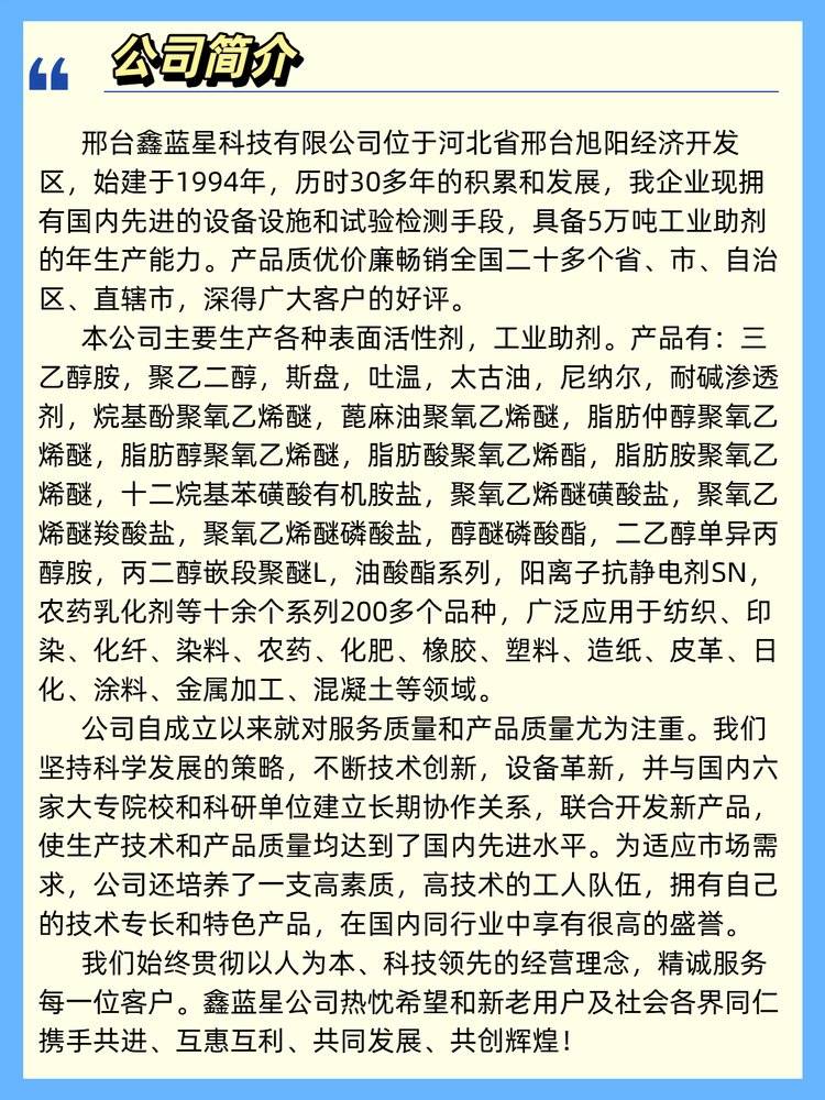 应用于纺织印染助剂、农药助剂