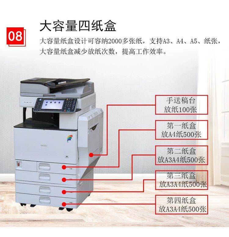 图片高清百年不掉色 理光打印复印机一体机 可提供上门改装业务