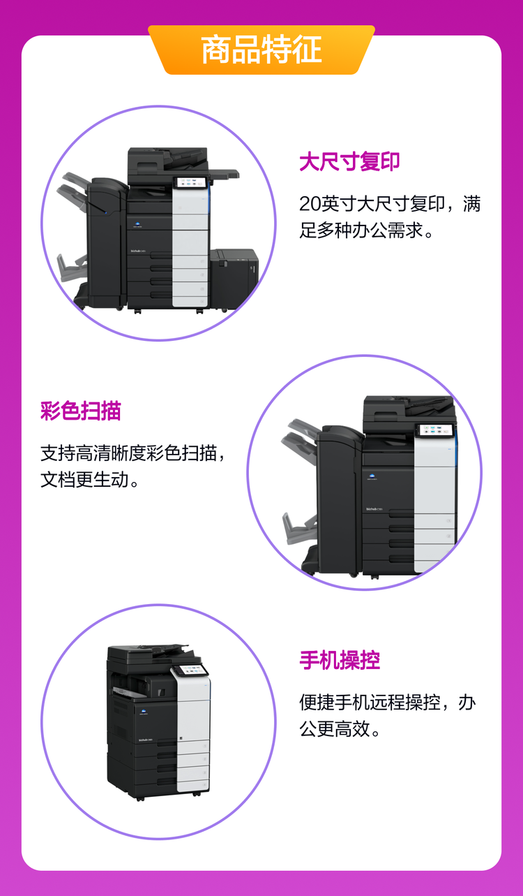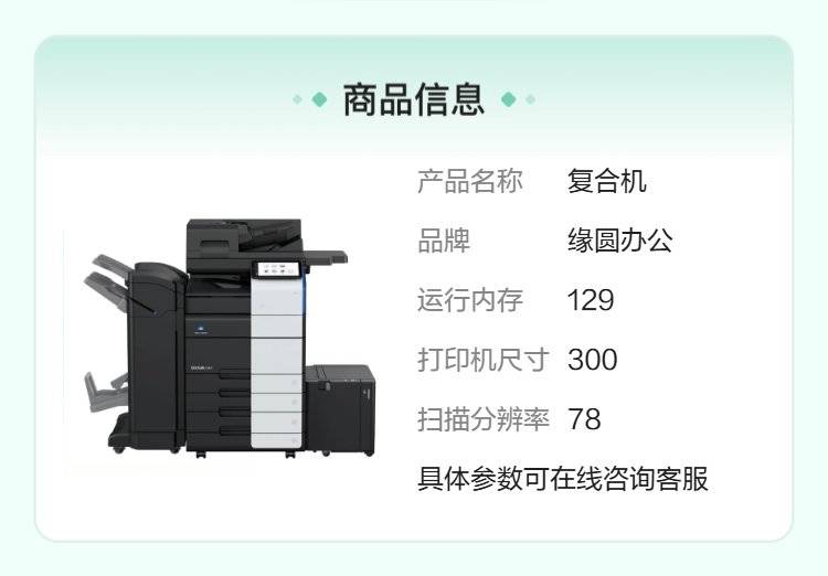 缘圆办公复合机 129运行内存 彩色扫描 20尺寸大复印 手机操控便捷