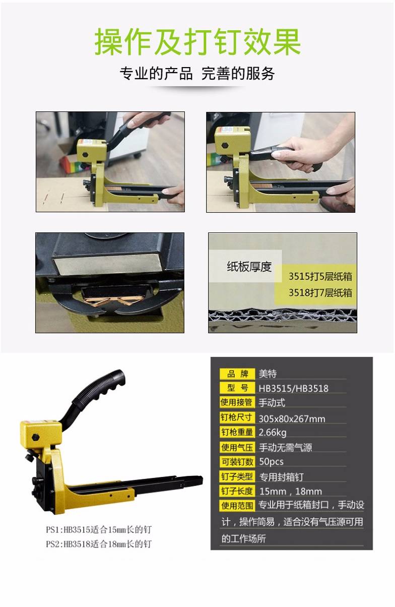 美特封箱机HB3515手动钉箱机手用订纸箱机3518纸箱钉枪打钉装钉机