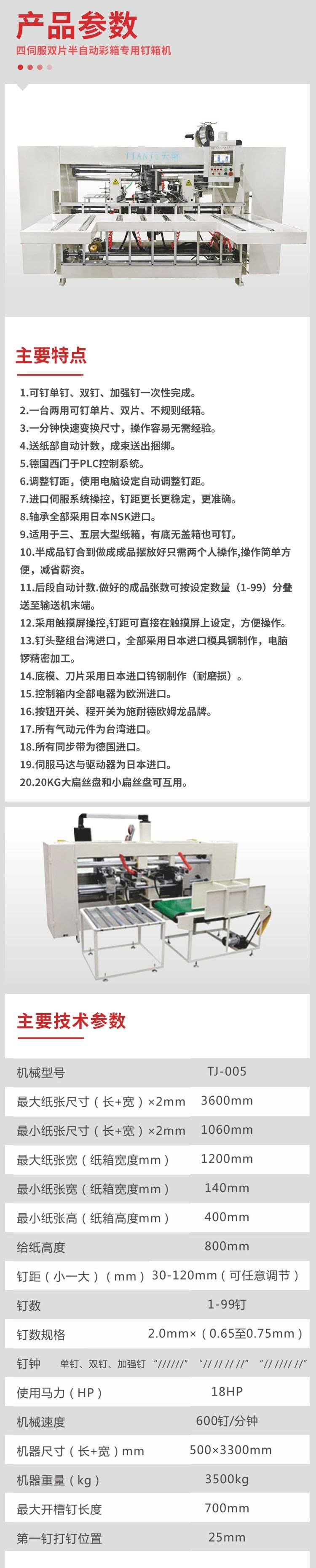 天际 TJ-002 系列 四伺服双片半自动彩箱专用钉箱机 自动钉箱机器设备