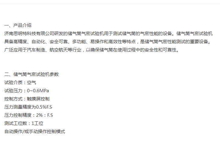 储气筒气密试验机-0~0.6MPa-思明特科技-厂家供应