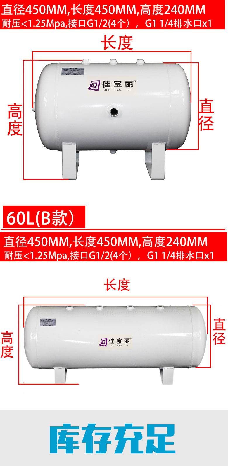 佳宝丽小型储气罐10/30/20L储气筒真空罐存气罐真空缓冲压力罐