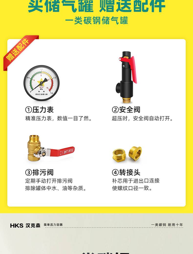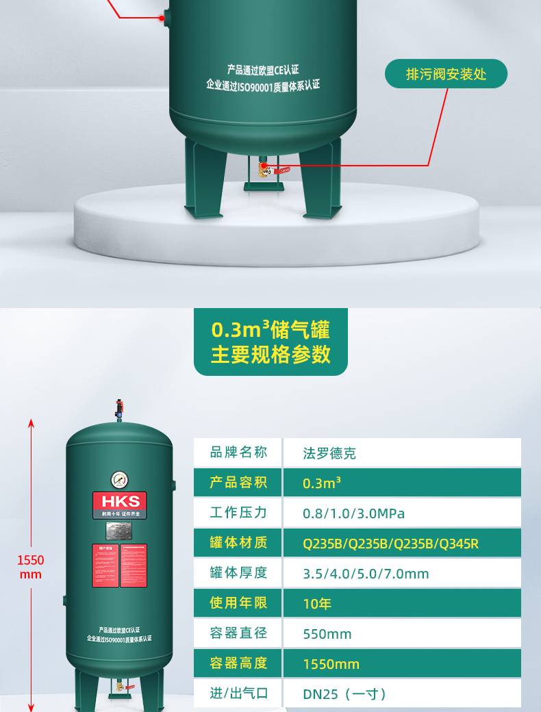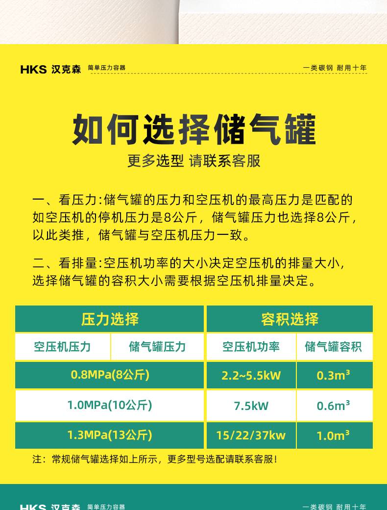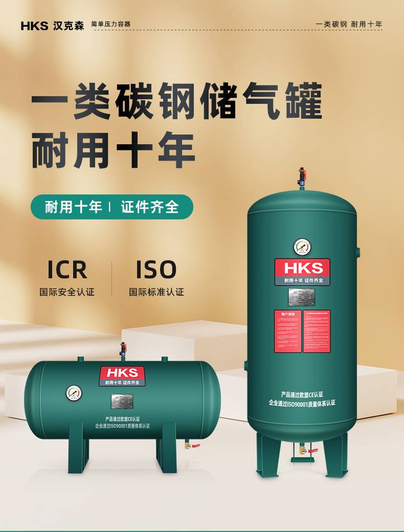 汉克森0.3/0.6/1.0/2立方储气罐空压机缓冲罐压力罐真空罐储气筒