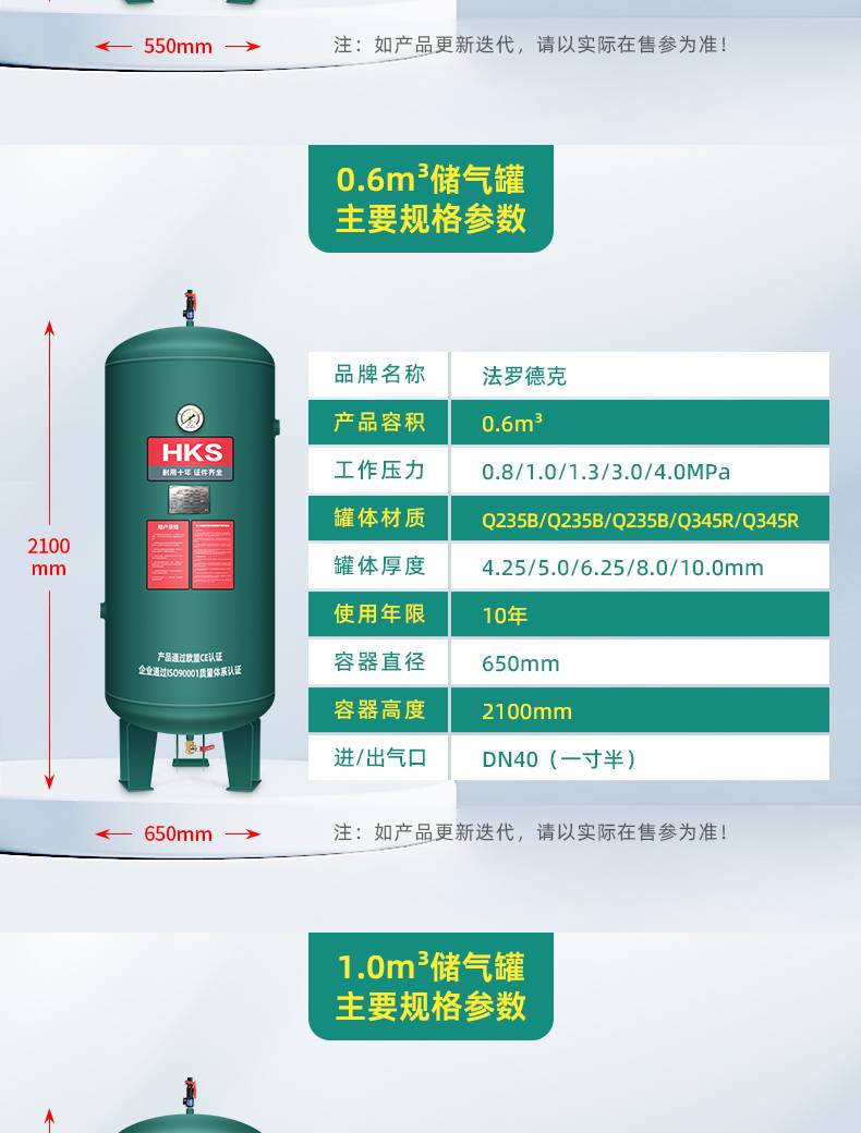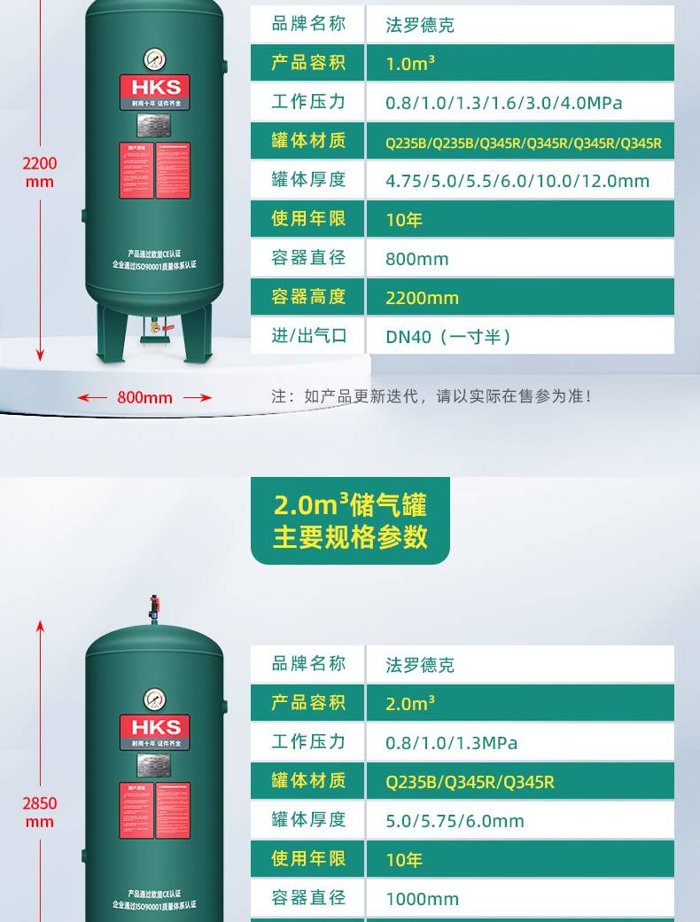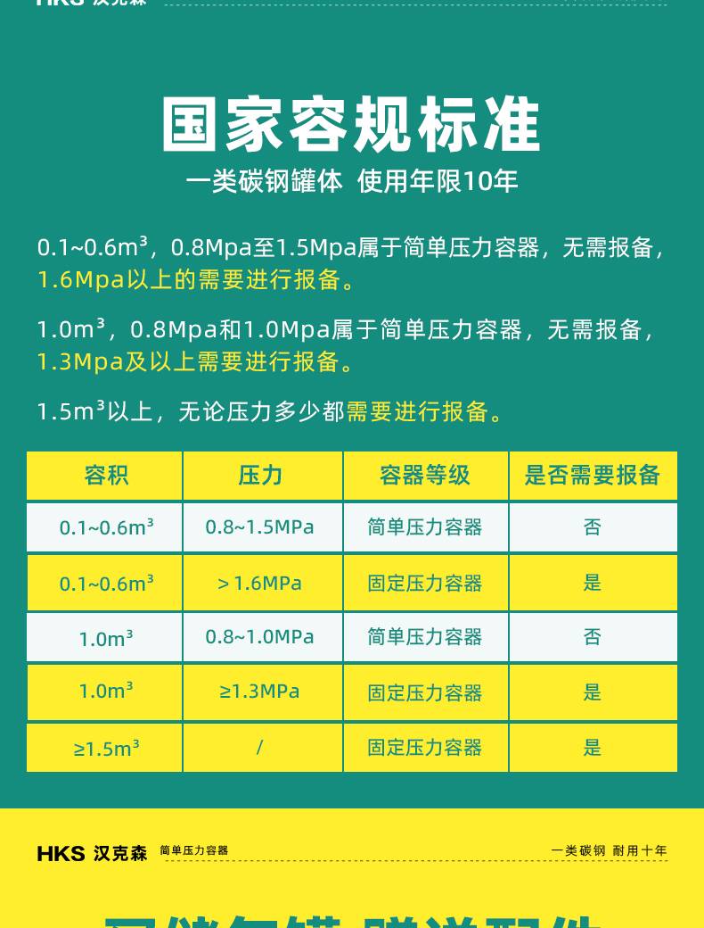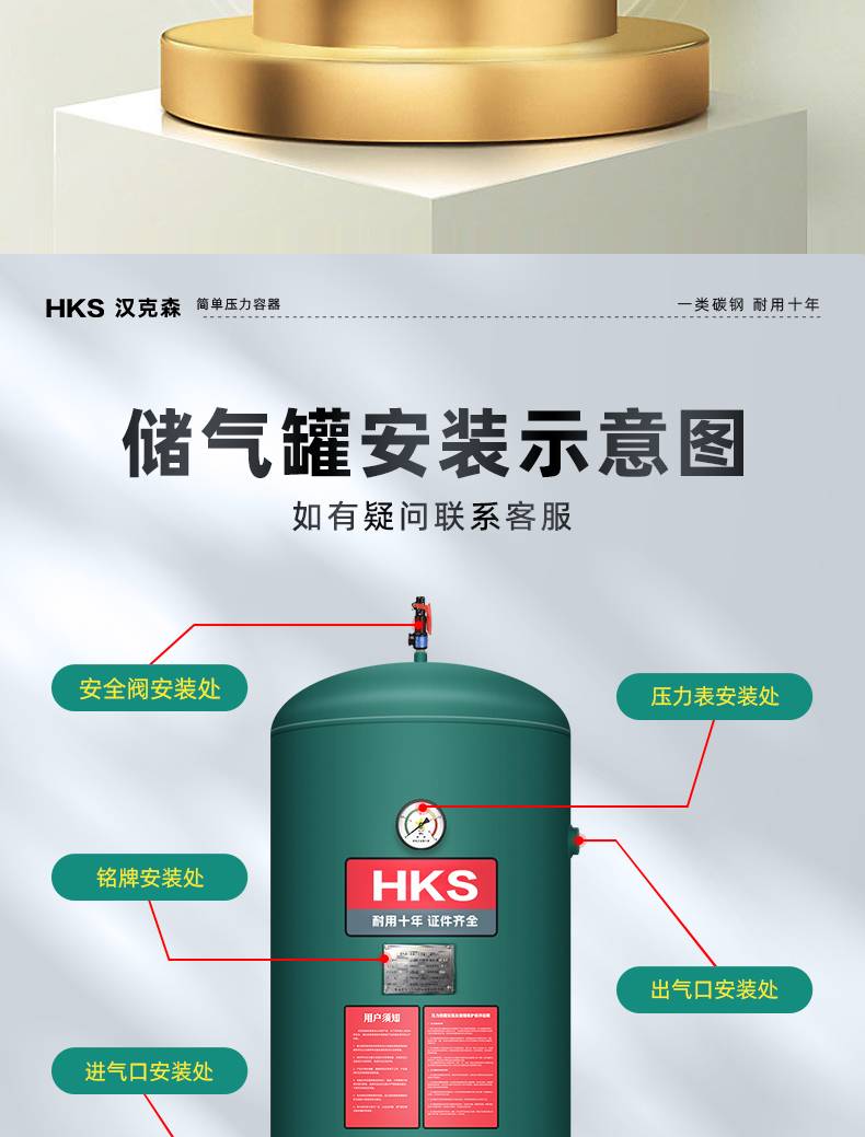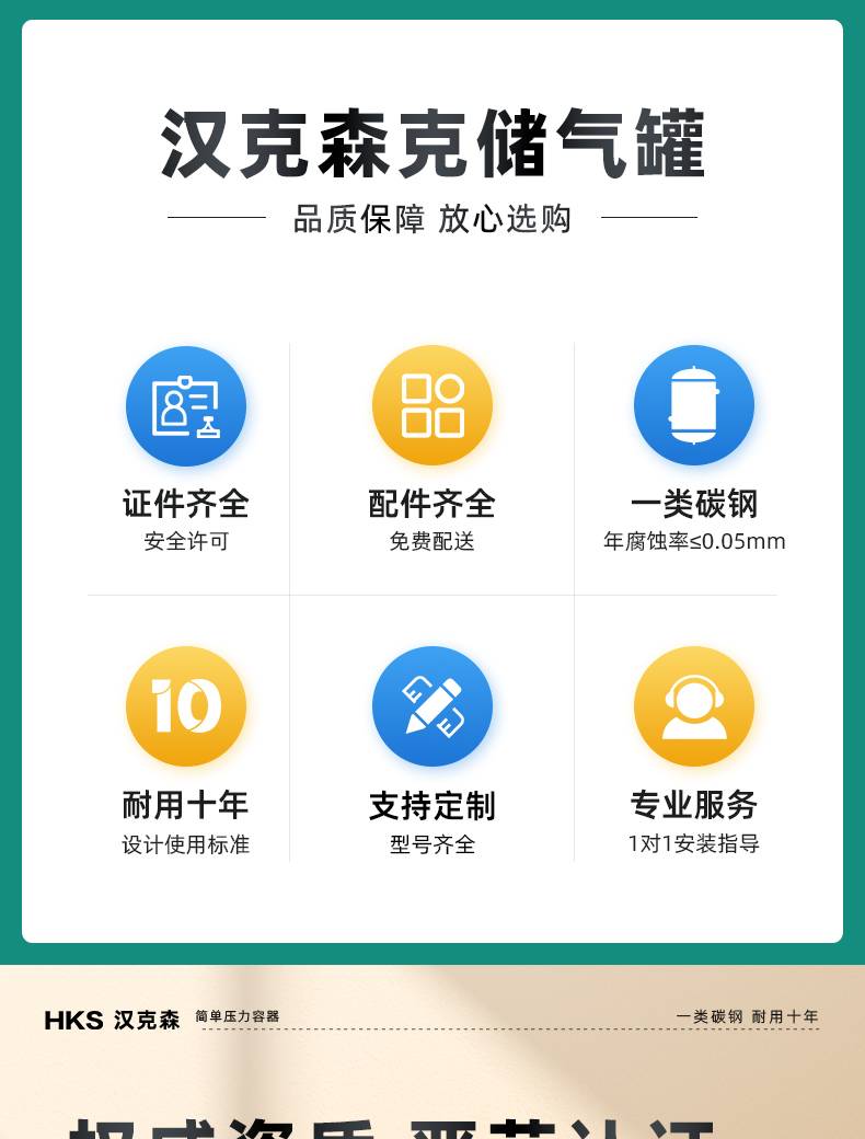 汉克森0.3/0.6/1.0/2立方储气罐空压机缓冲罐压力罐真空罐储气筒