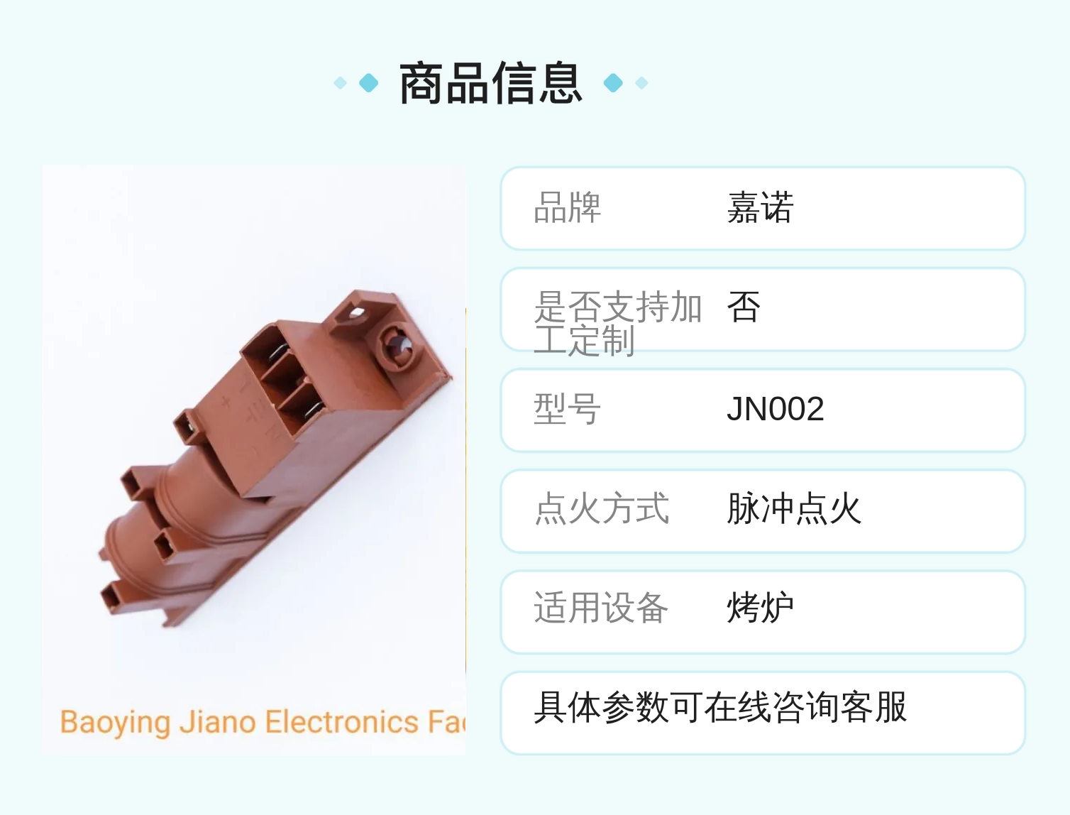 嘉诺JN002烤炉脉冲点火器4头多头设计快速点火