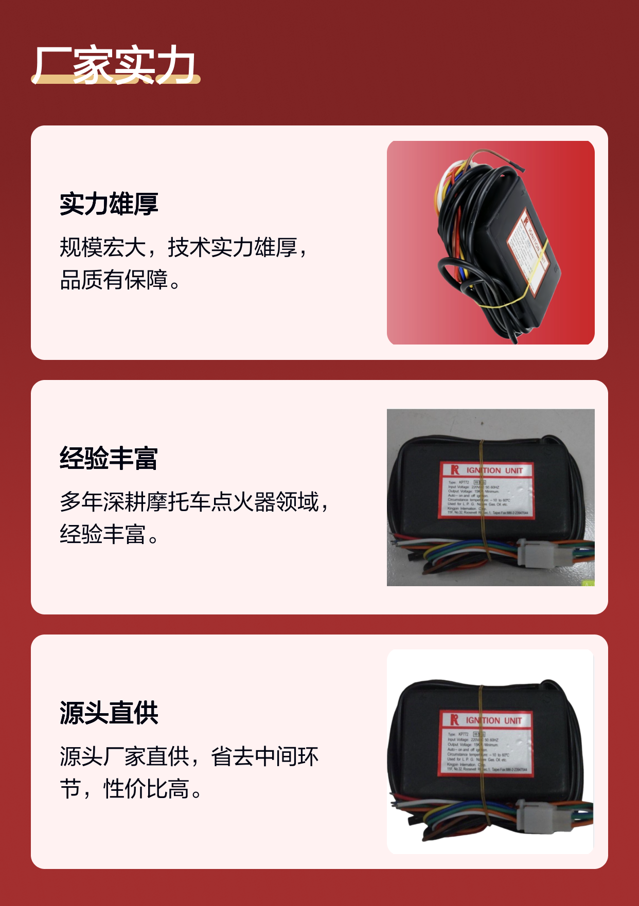 稳定耐用设计 摩托车脉冲点火器 多场景适用 耐高温性能