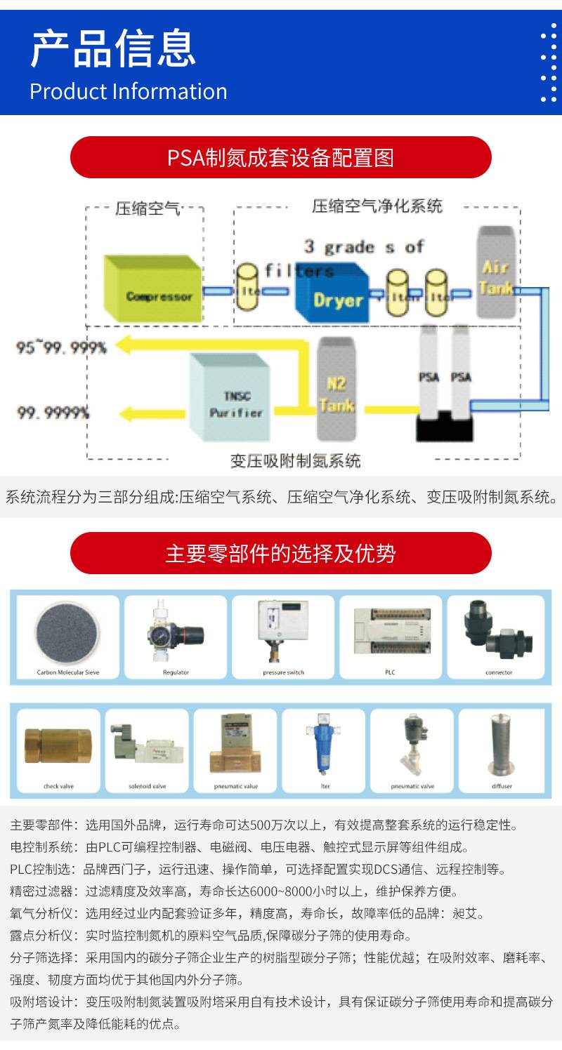 电子行业专用制氮机压力稳定可调 工业热处理大型制氮设备安装