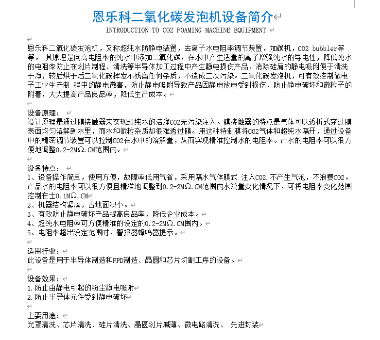 二氧化碳发泡机 电阻率可调 微电子工业制程静电防护专用设备