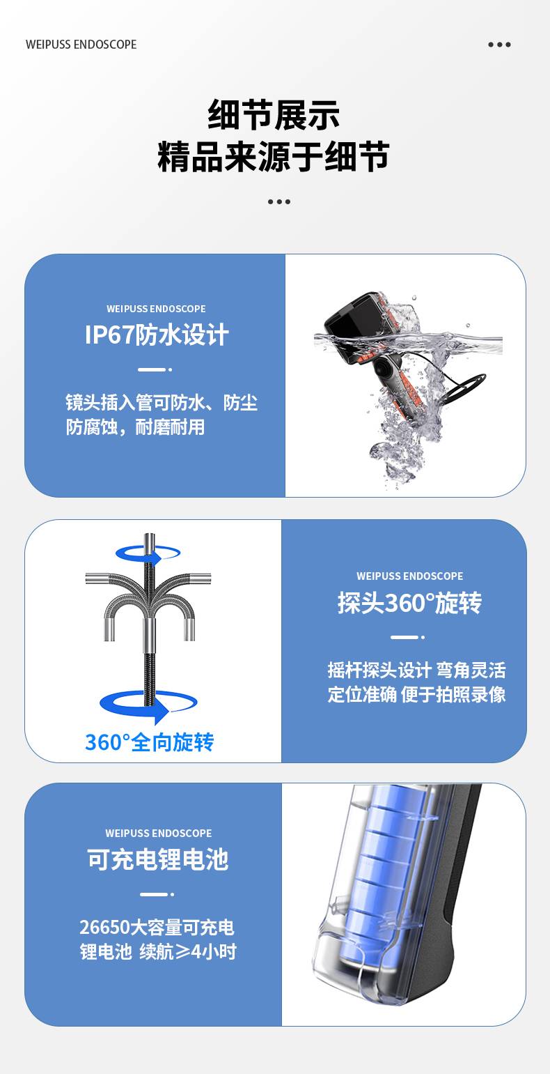 0.95mm超细工业内窥镜 便携高清可录像 航空电子精密设备检测专用