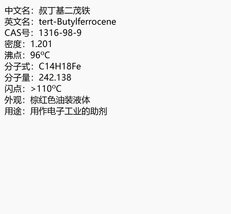 叔丁基二茂铁 1316-98-9 含量99% 用作电子工业的助剂