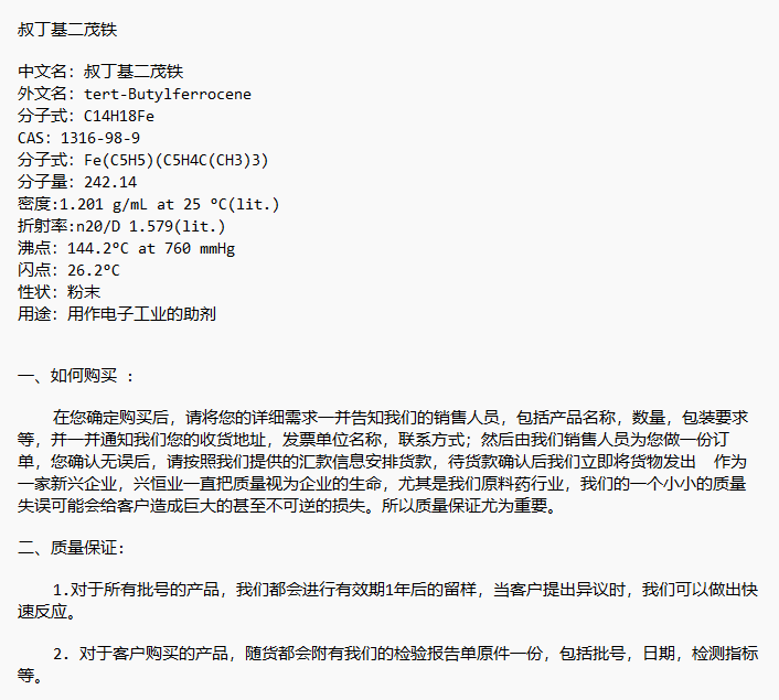 CAS:1316-98-9 叔丁基二茂铁 用作电子工业的助剂 兴恒业科技