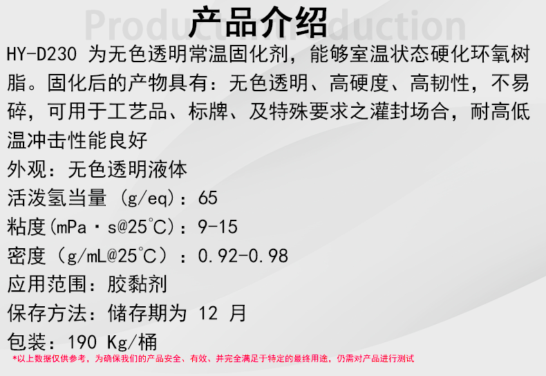 活泼氢当量 (g/eq)65环氧树脂配合操作期长HY D230固化剂辉亚新材料