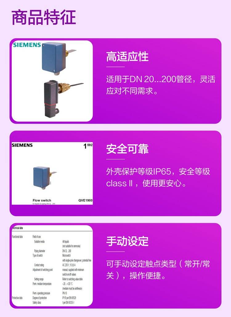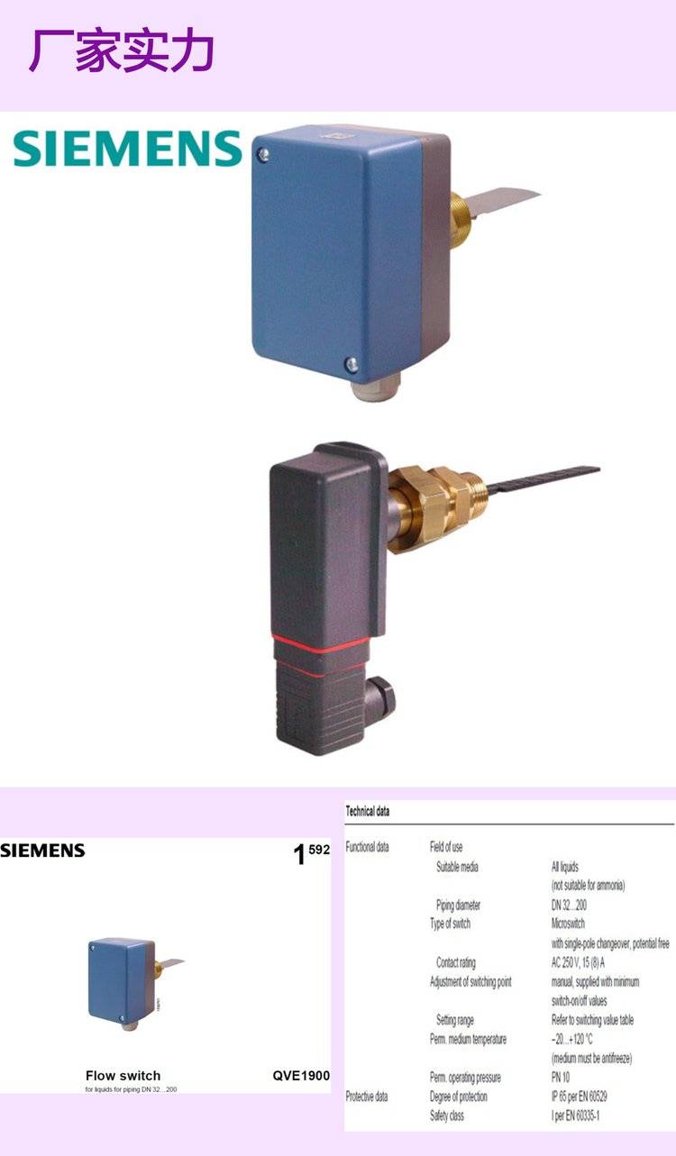 SIEMENS西门子流量开关QVE1900水流开关QVE1901