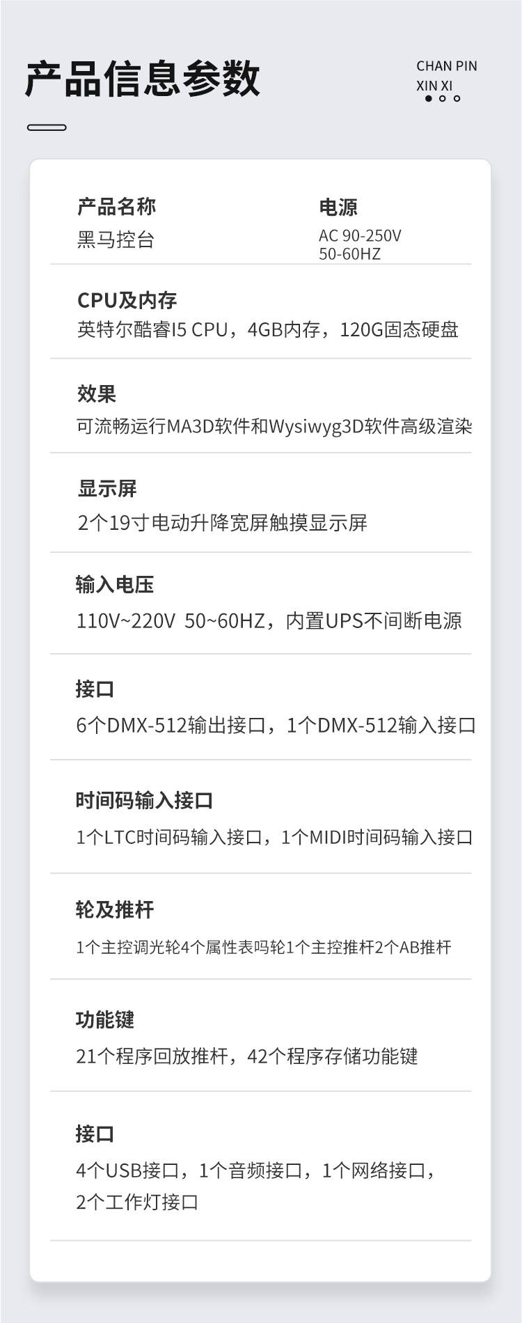 6个DMX-512输出接口,1个DMX-512输入接口(复合型)