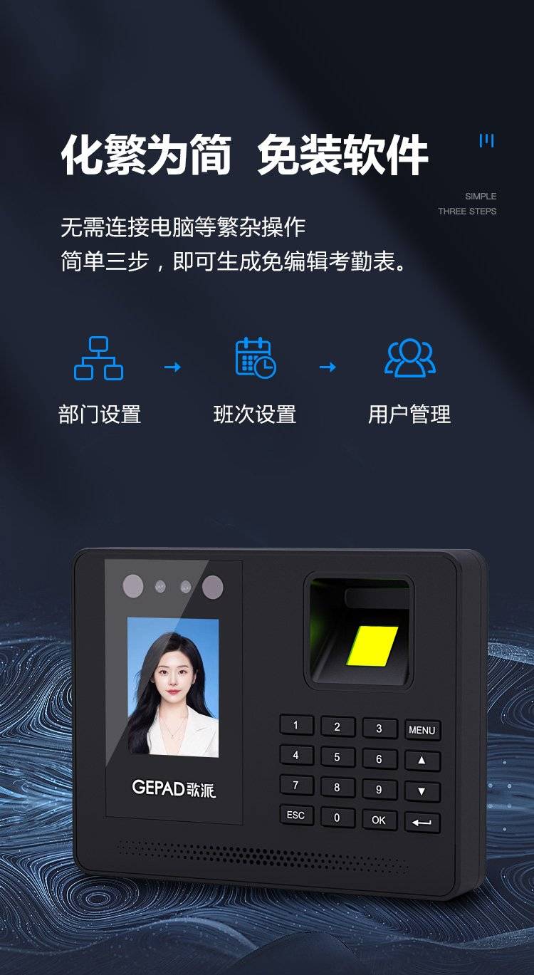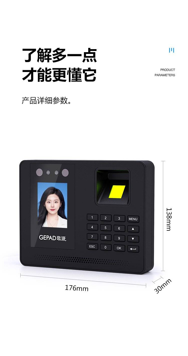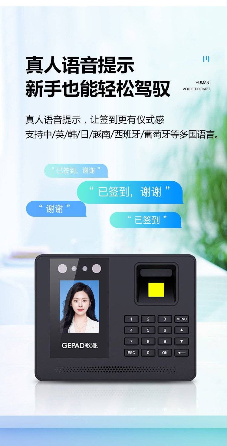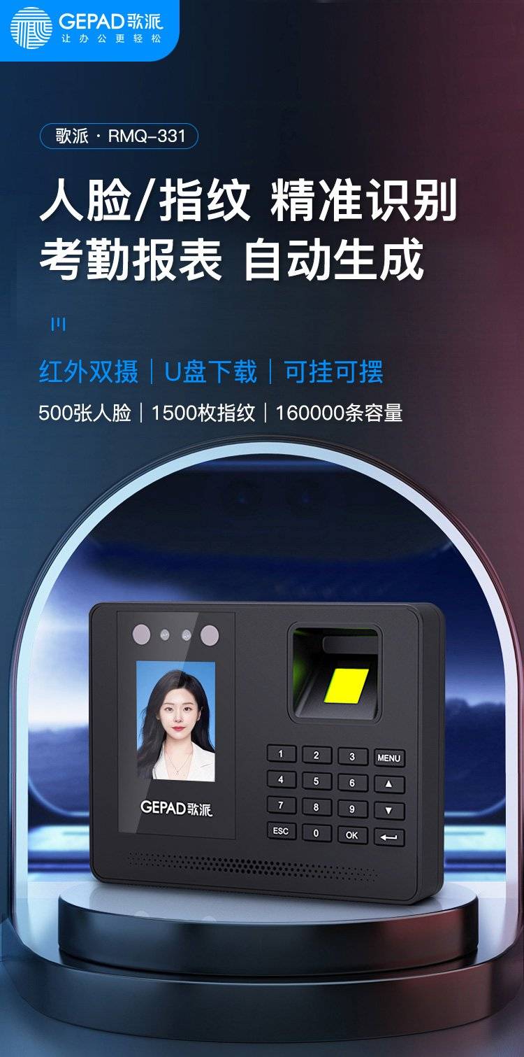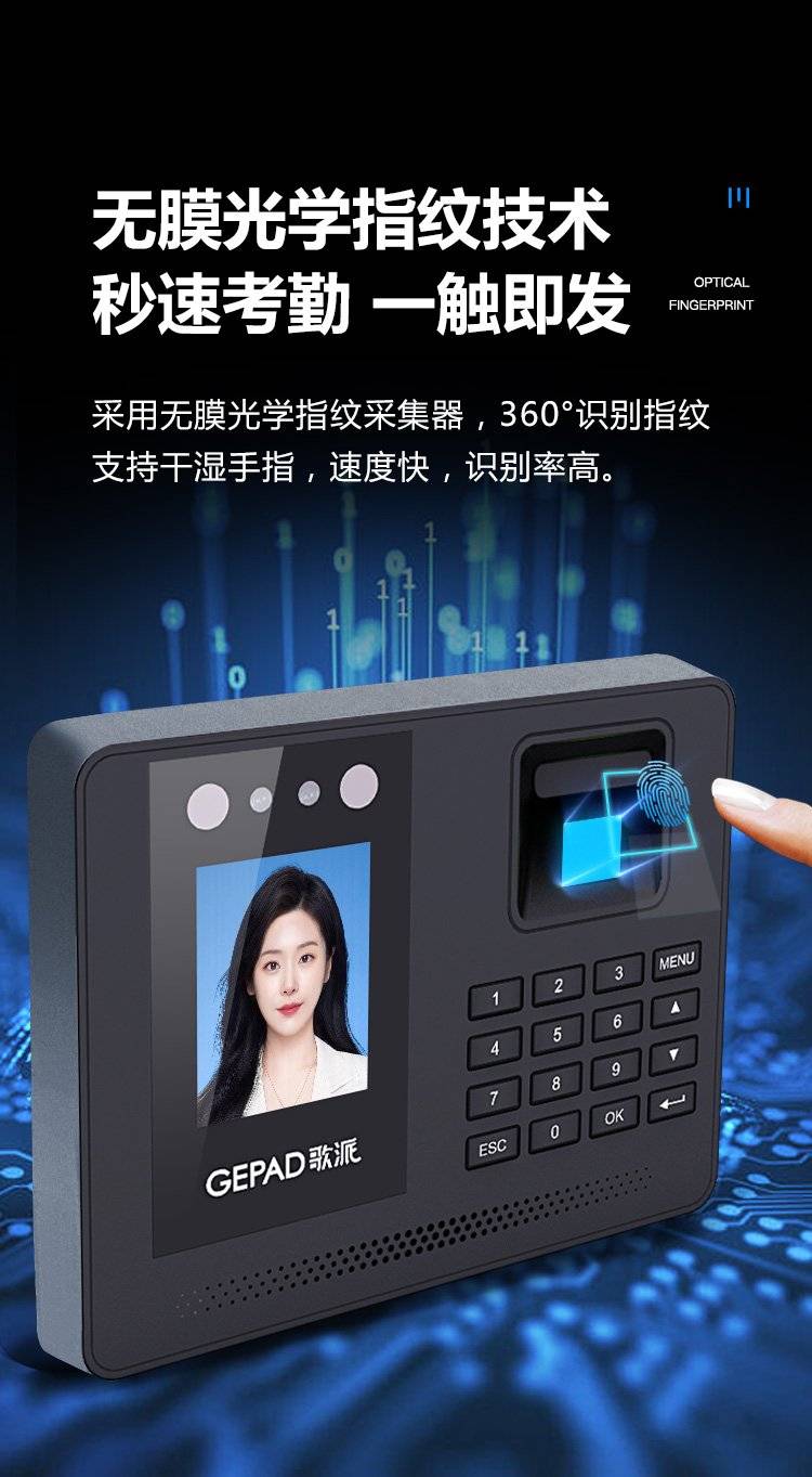歌派打卡机 人脸+指纹识别考勤机 免网络免软件 签到机 自动生成报表
