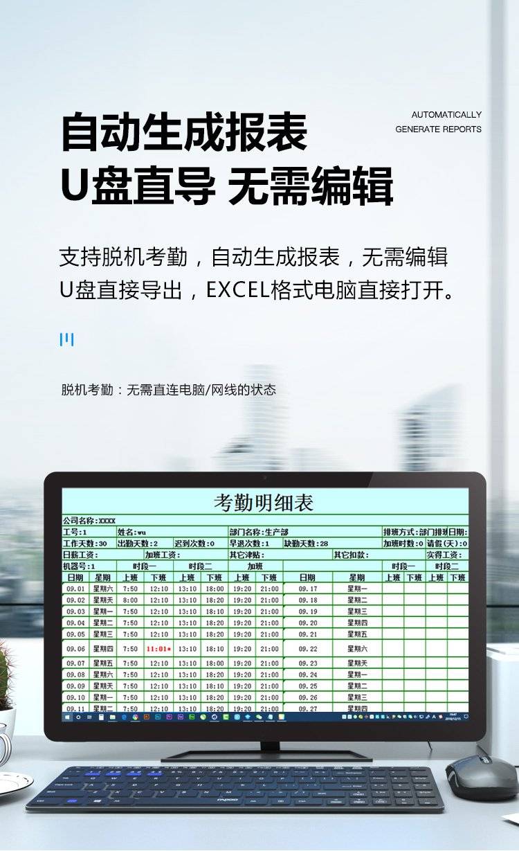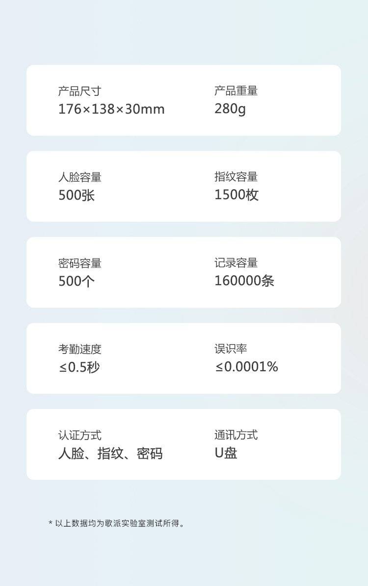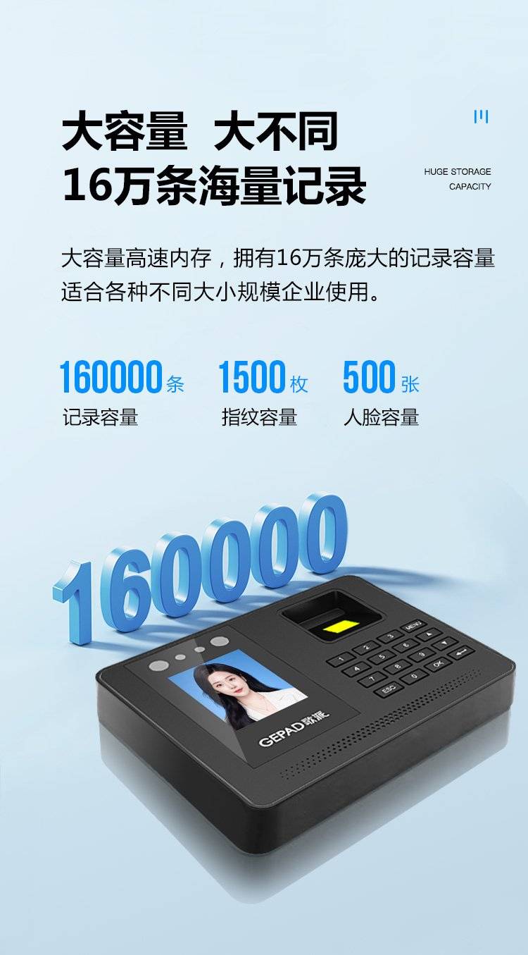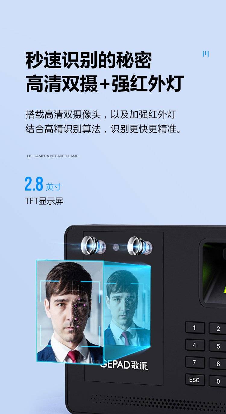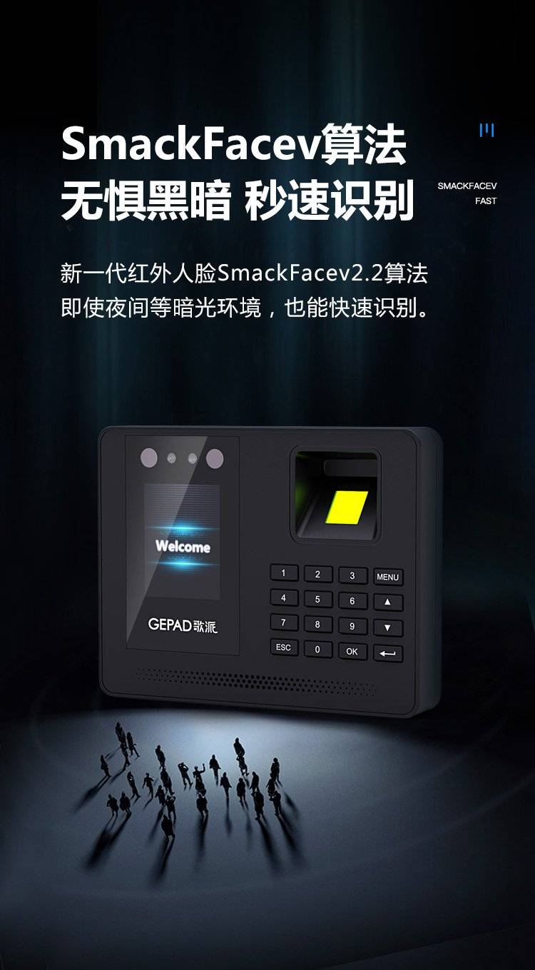 歌派打卡机 人脸+指纹识别考勤机 免网络免软件 签到机 自动生成报表
