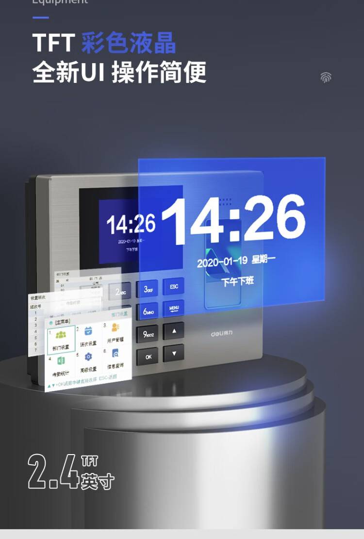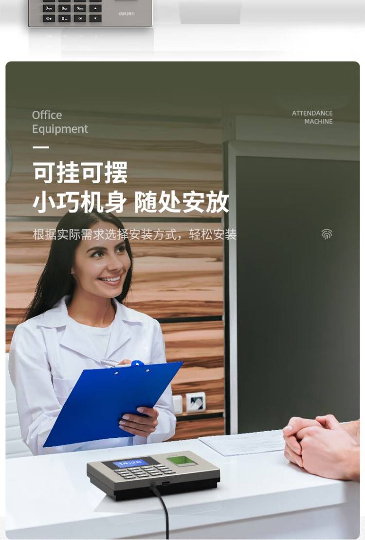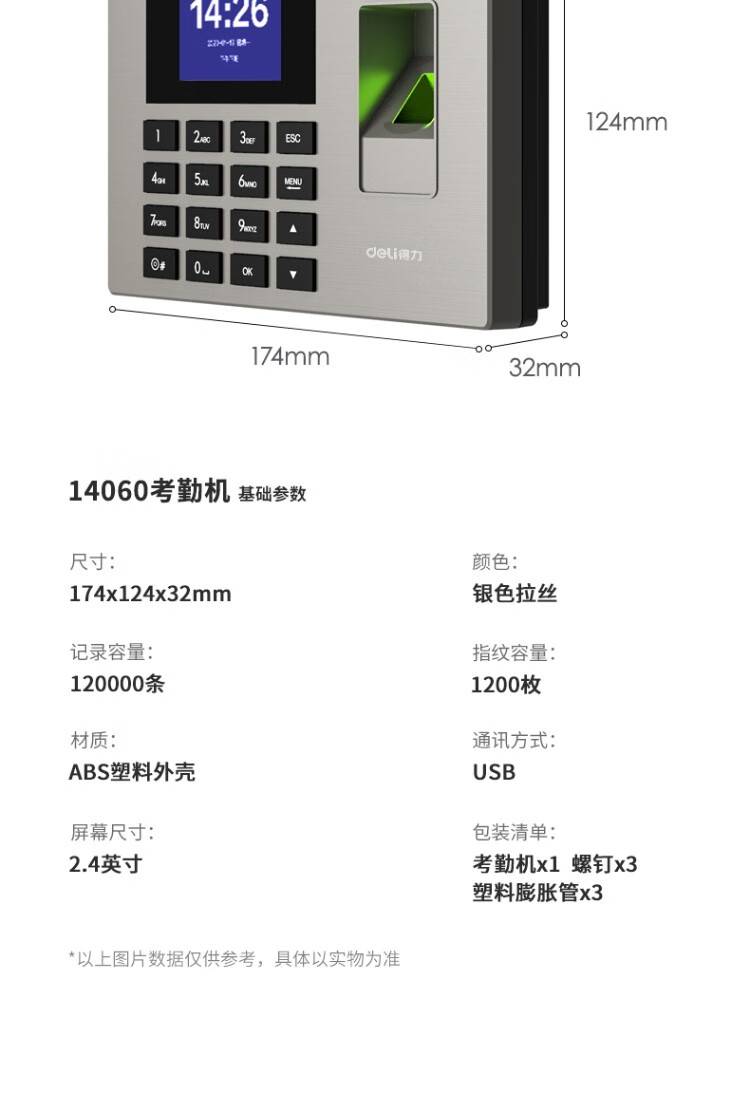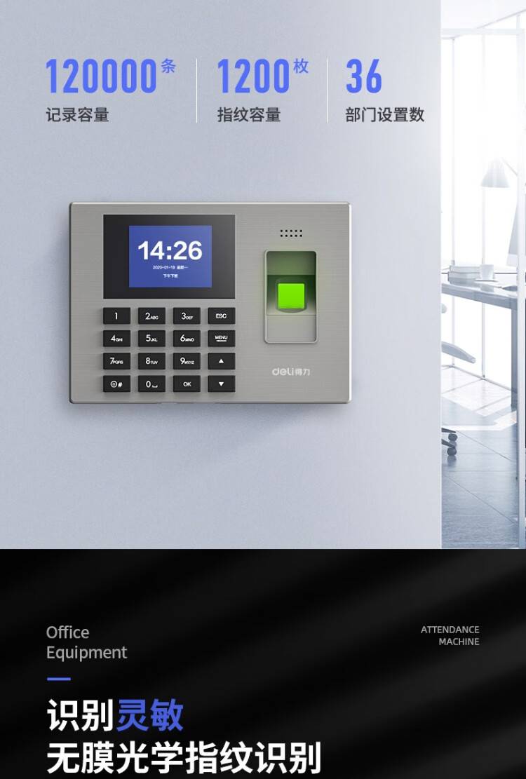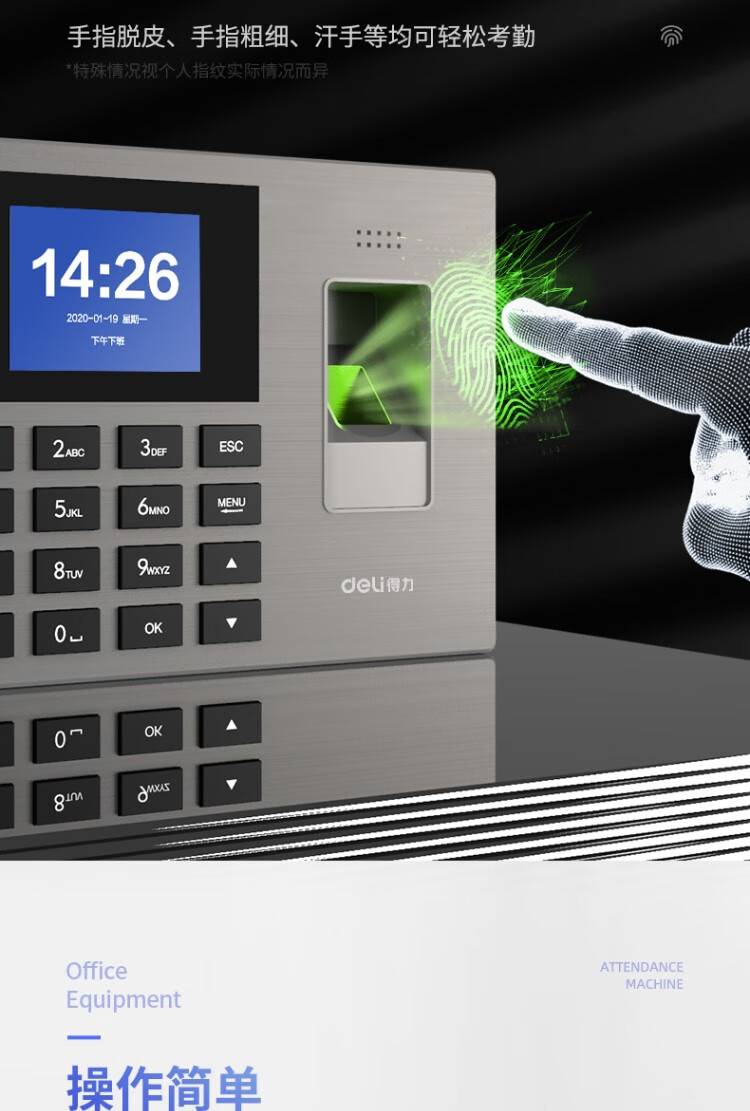 【指纹考勤机】得力14060 打卡上下班签到 银灰色/1台