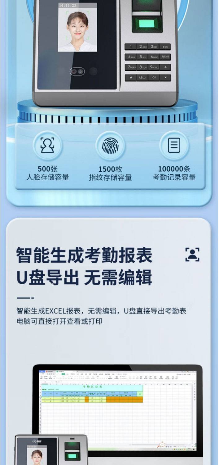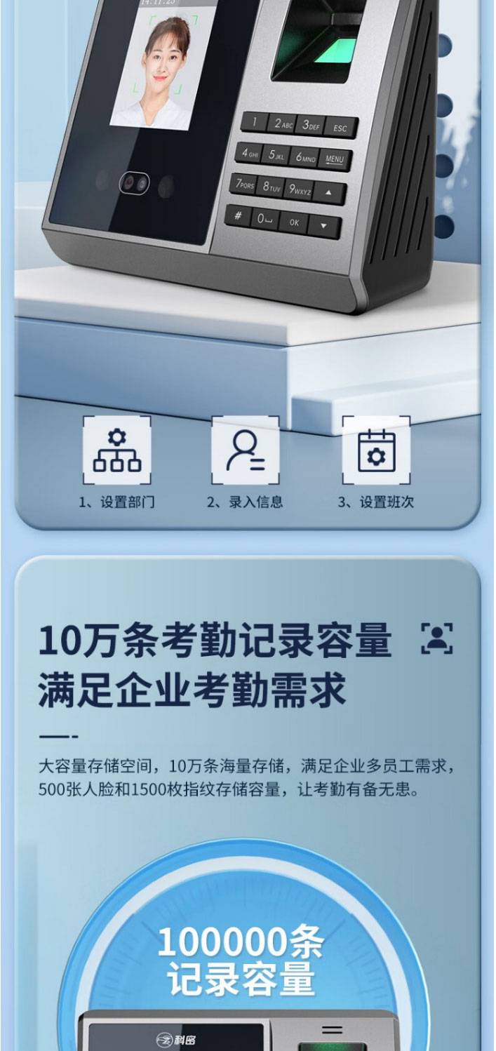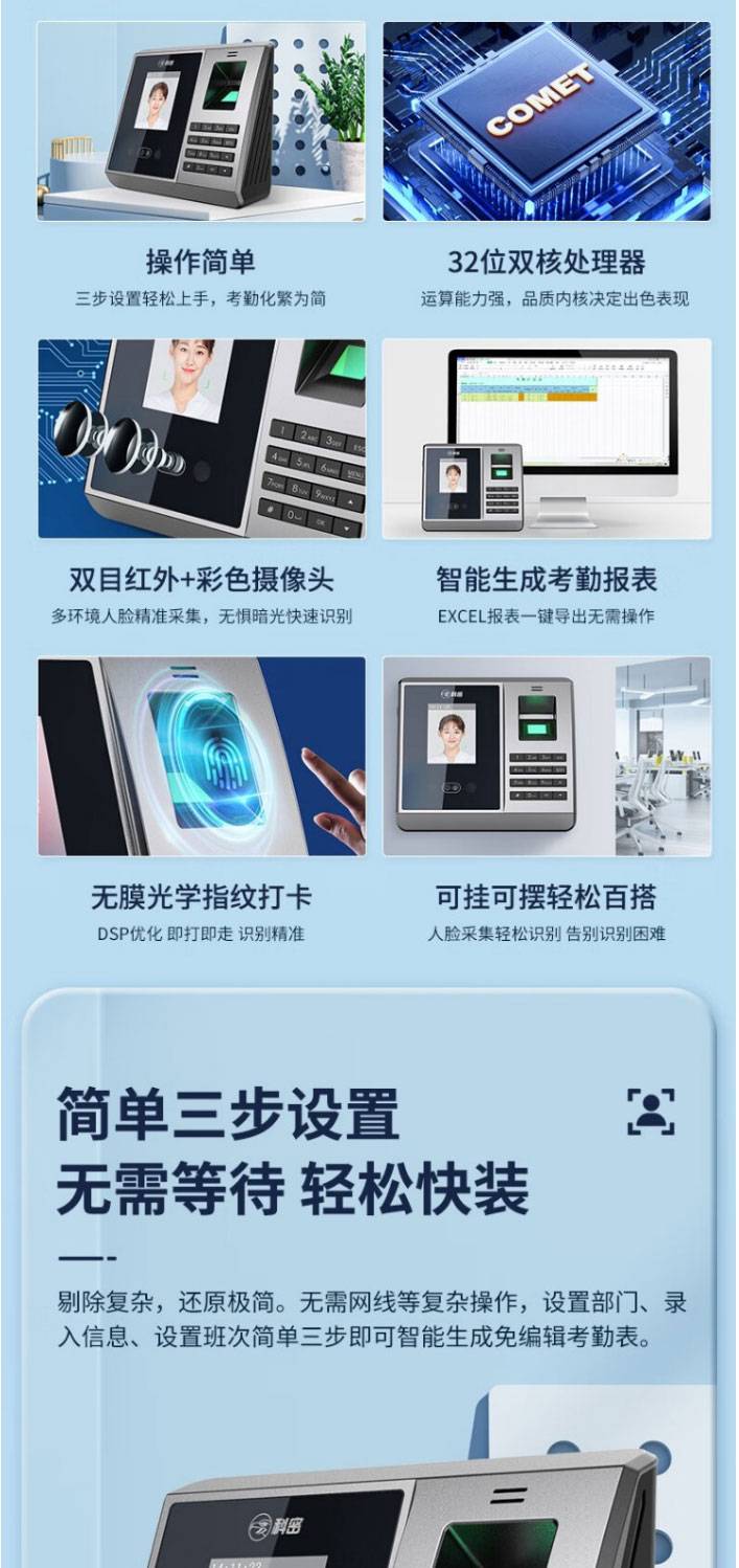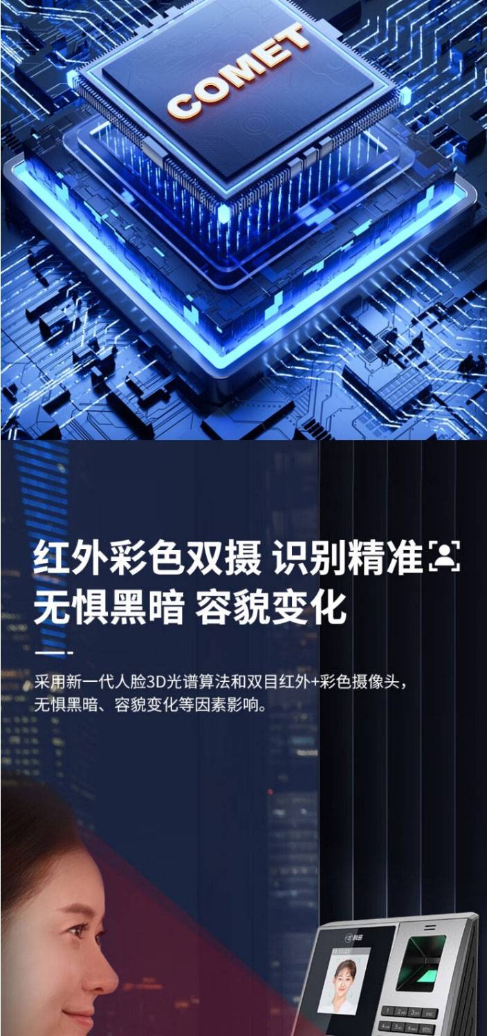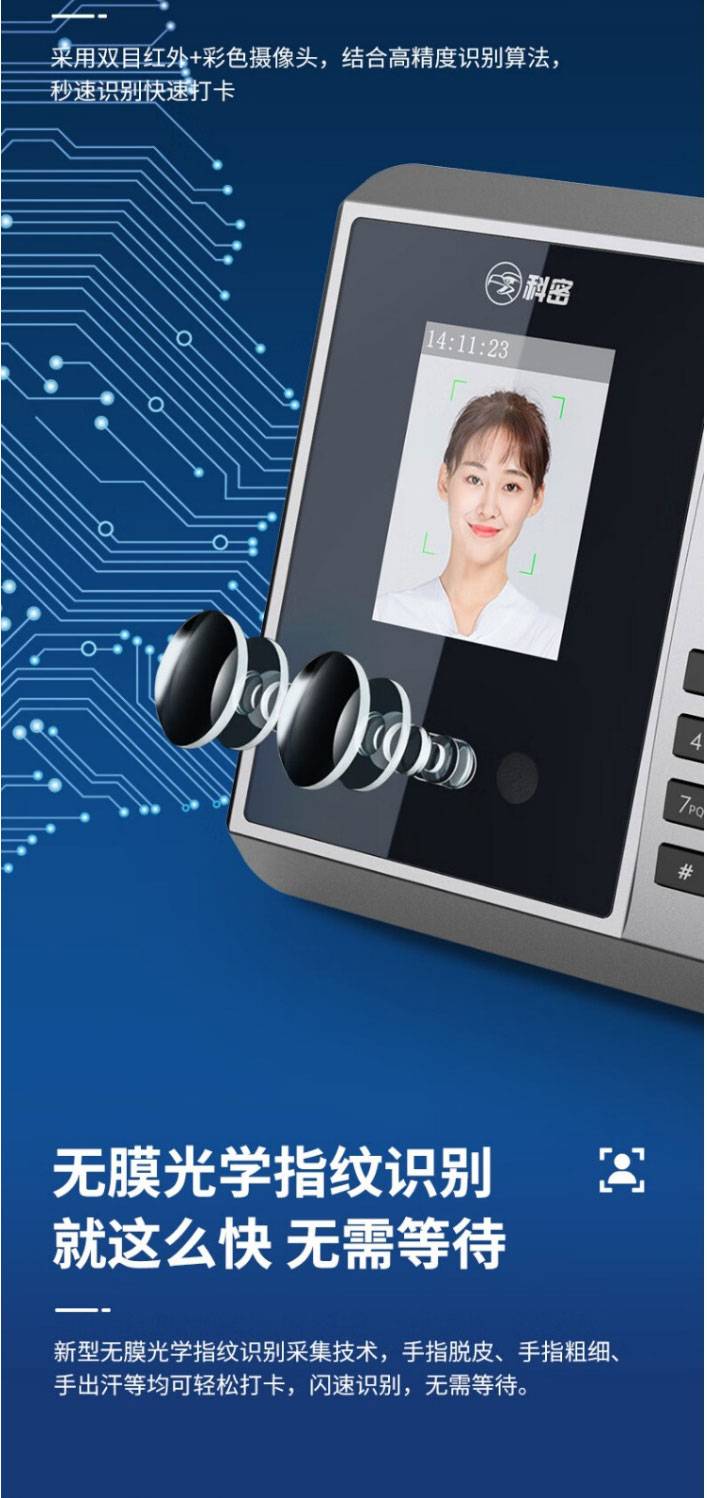 科密(comet) FZ01企业微信智能云考勤机 打卡机人脸+掌纹识别