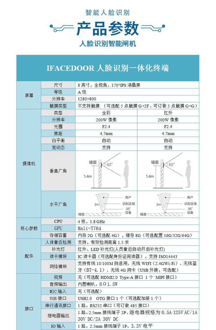 动态人脸识别门禁系统一体机面部打卡机办公室上下班考勤机