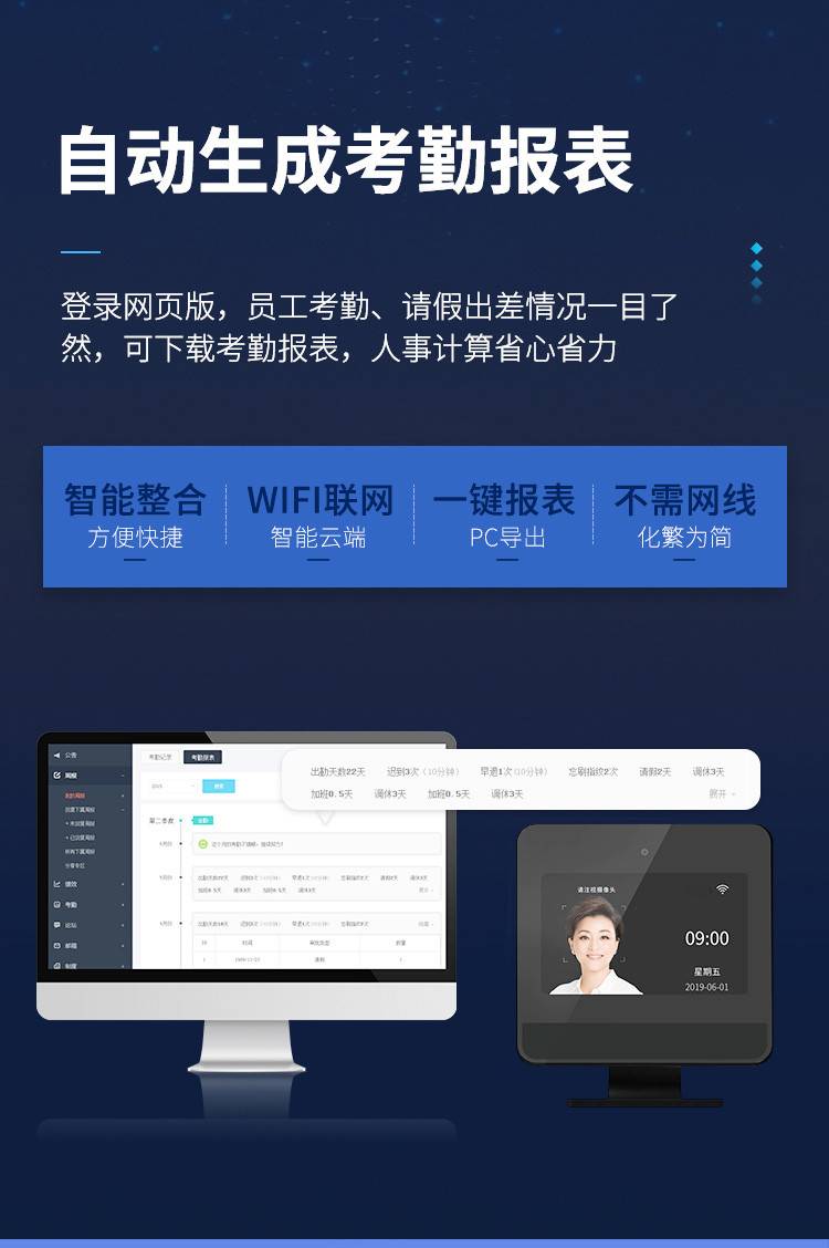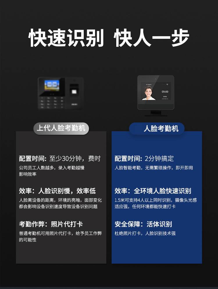 人脸识别考勤机智能脸部面部打卡机一体上下班管理