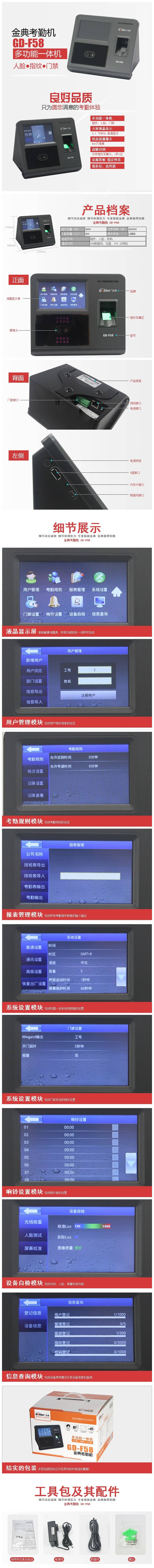 金典GD-F58人脸精准识别考勤机面部识别 指纹式打卡机考 勤机签到机