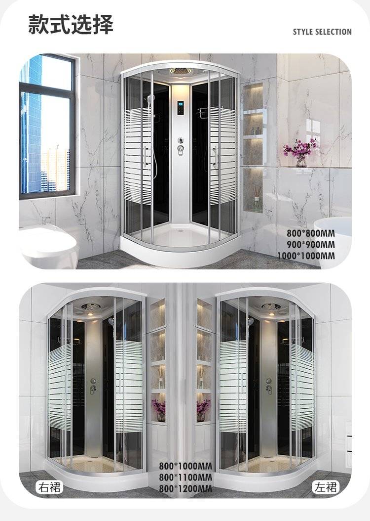 一体式淋浴房整体浴室玻璃扇形家用带底座封闭式农村洗澡间沐浴房