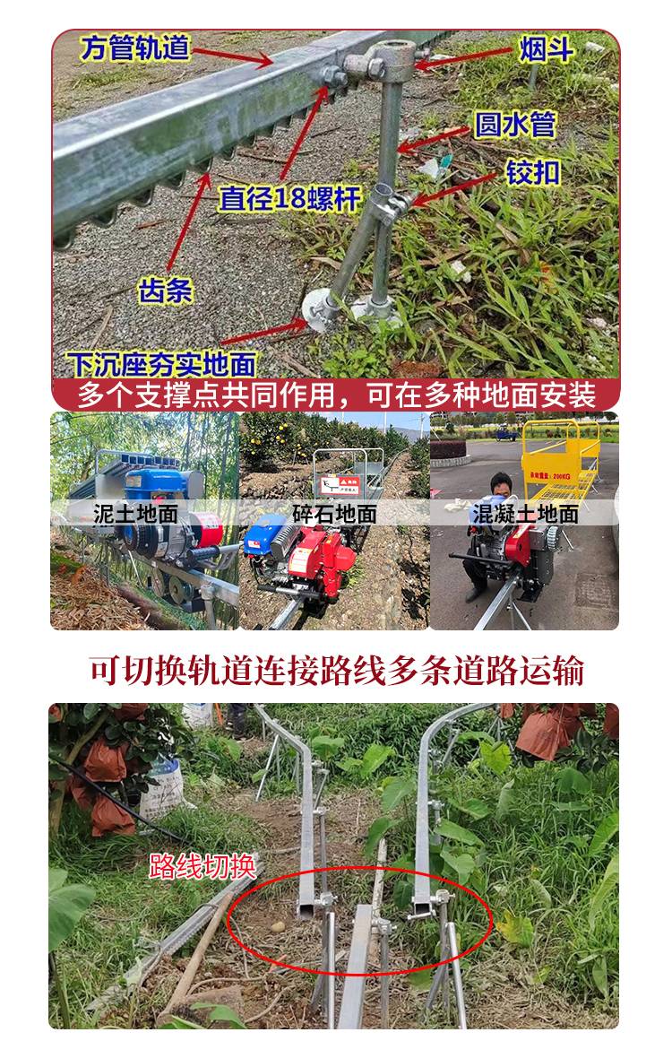 【特惠】单轨运输车 山地果园搬运轨道车 电动爬坡小火车山区丘陵