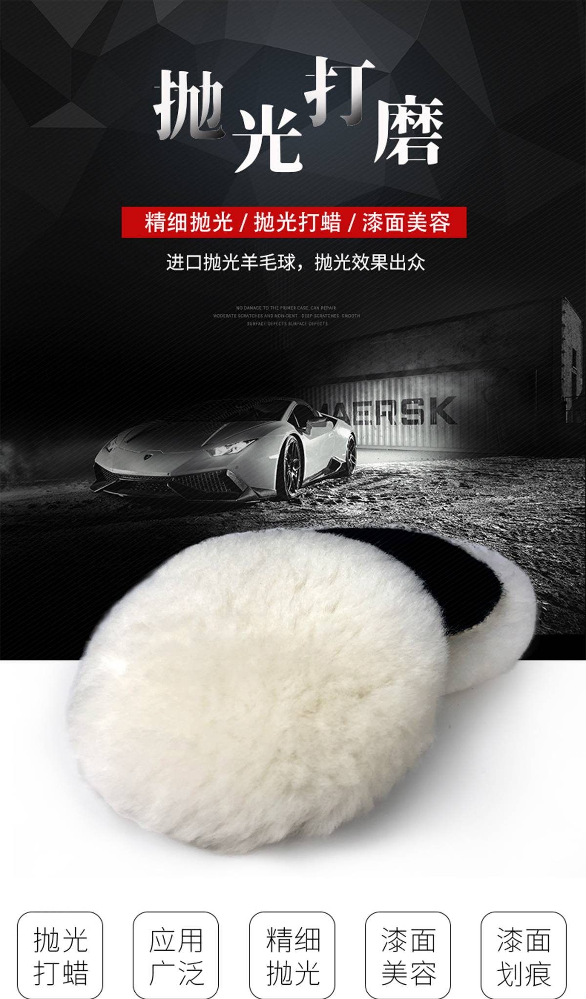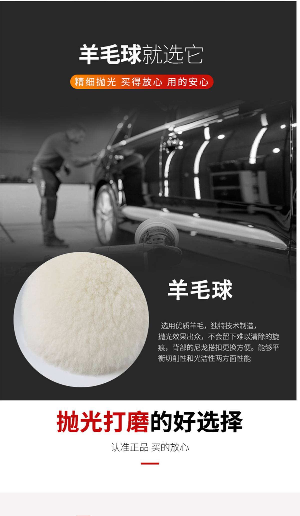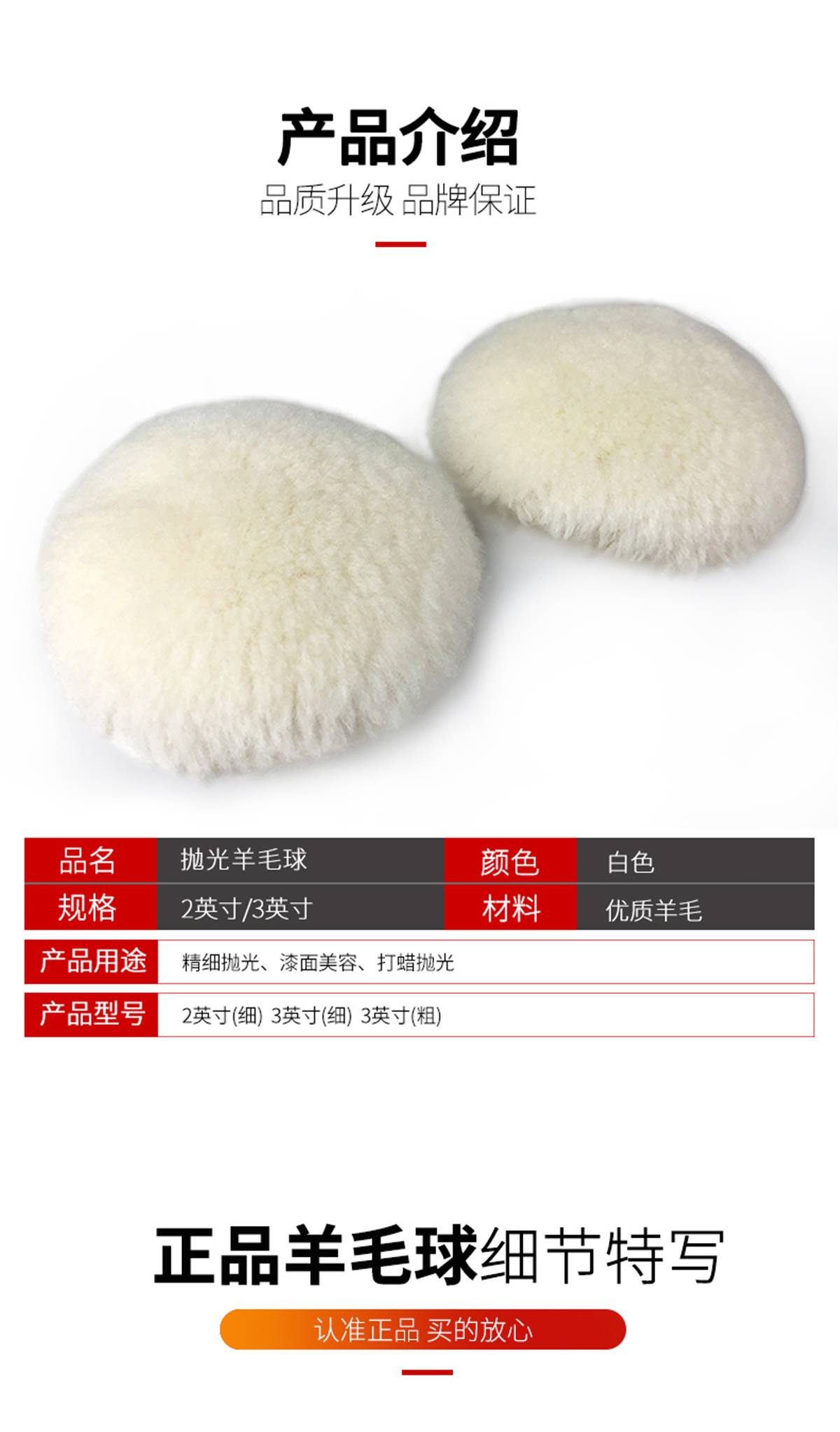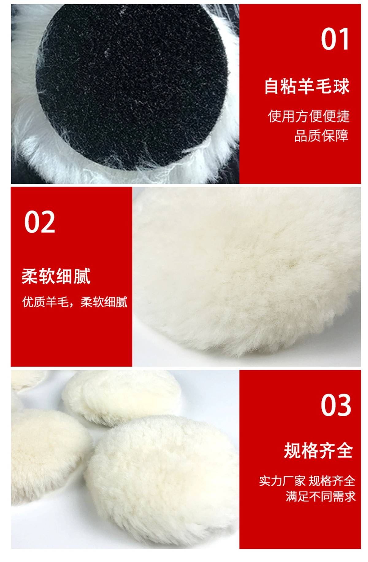 羊毛球 汽车家具打蜡 抛光轮3寸单面粘盘漆面抛光用 替代3M85078