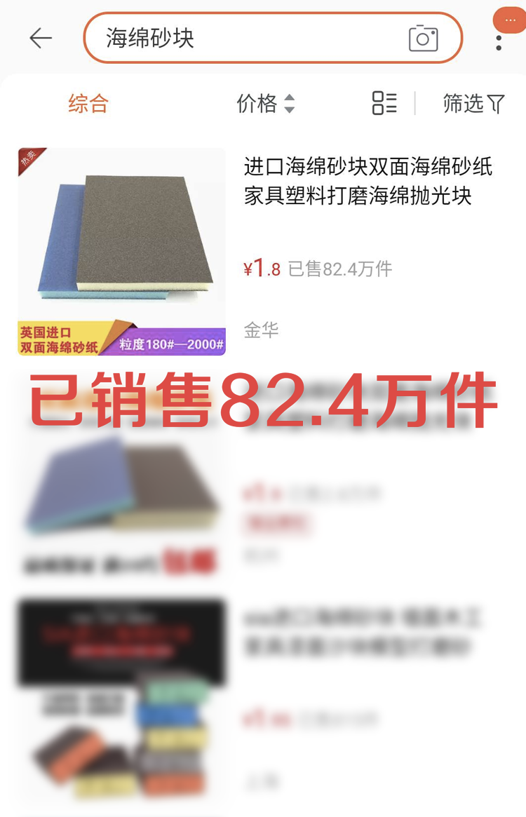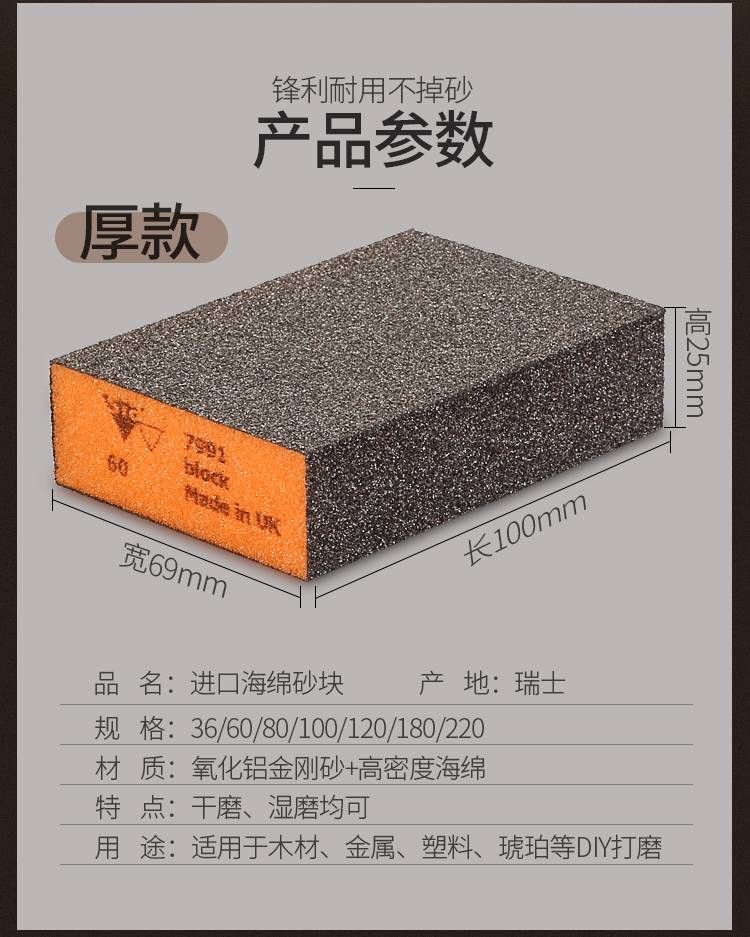 进口猫王海绵砂块双面海绵砂纸塑料家具打磨海绵抛光块海绵打磨块