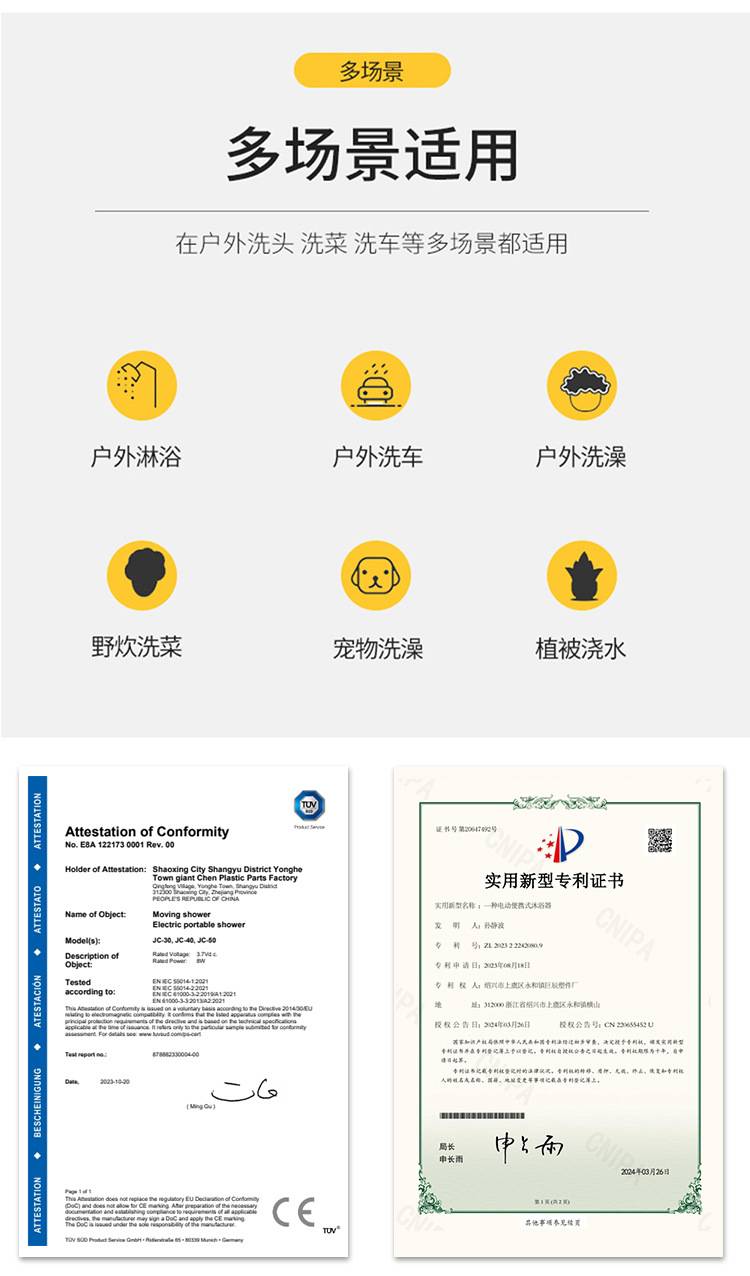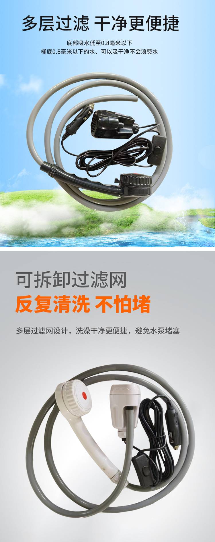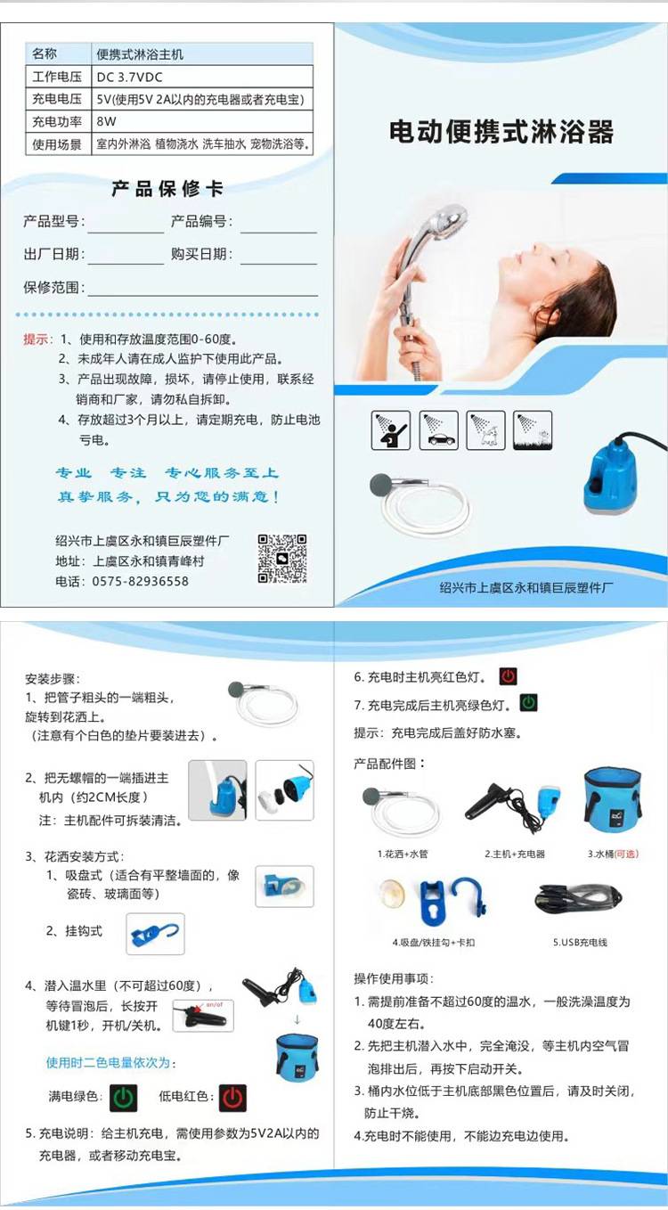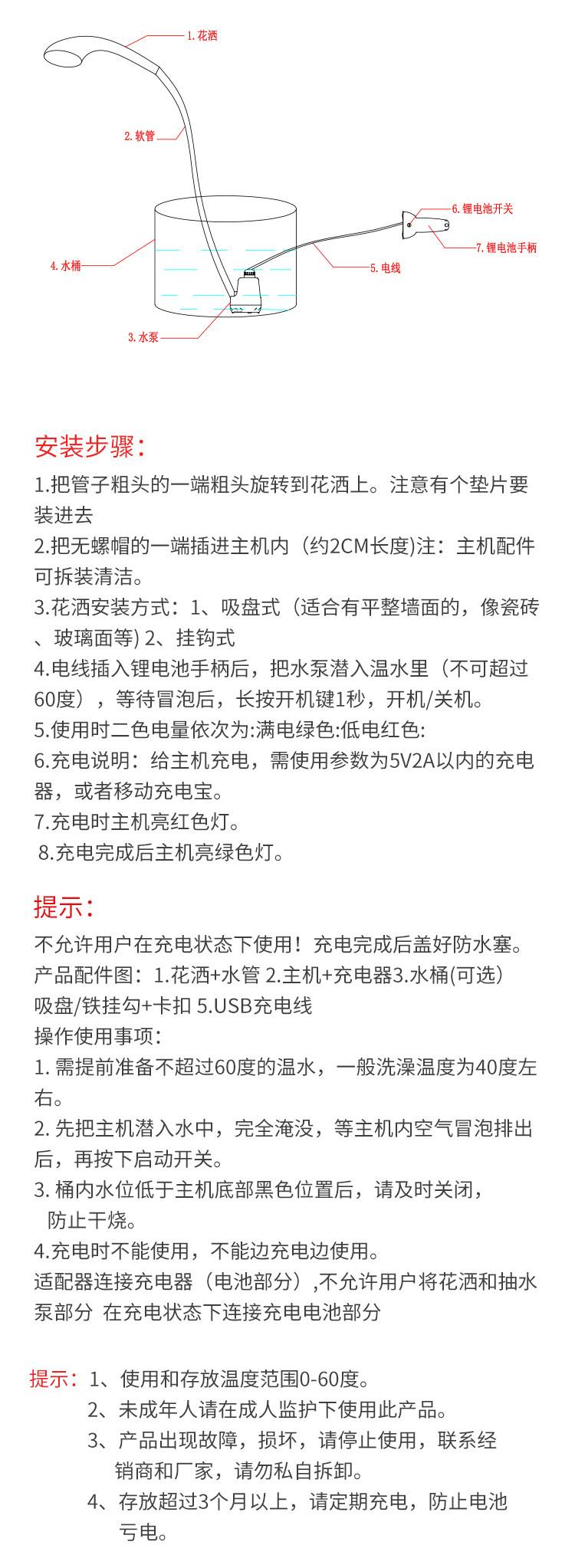 巨辰品牌USB充电便携式户外淋浴喷头车载直插式花洒
