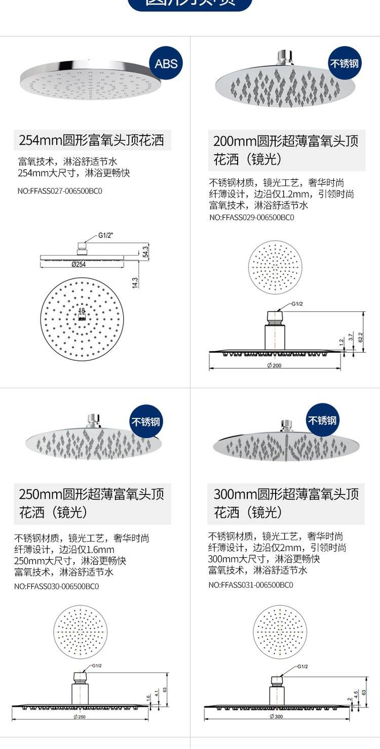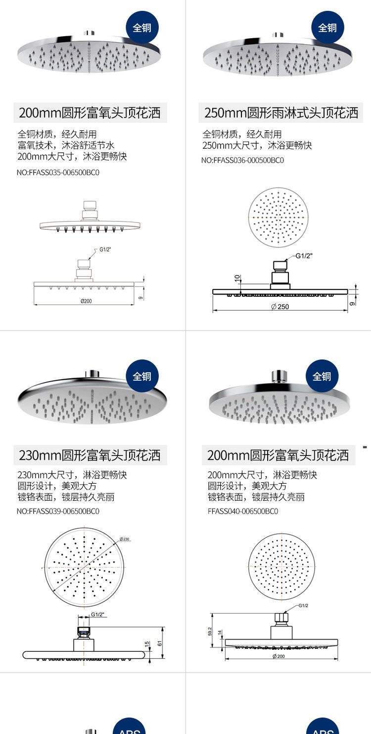 美标卫浴增压冷热淋浴头家用大花洒顶喷头头顶淋雨单头圆形顶洒
