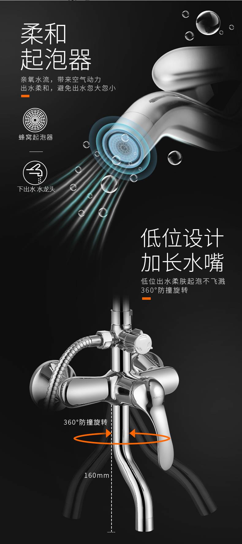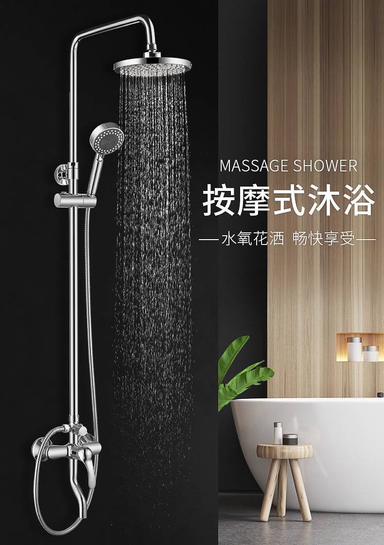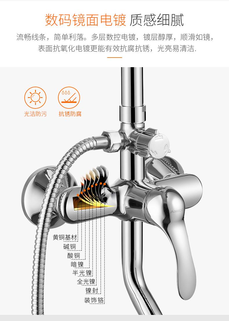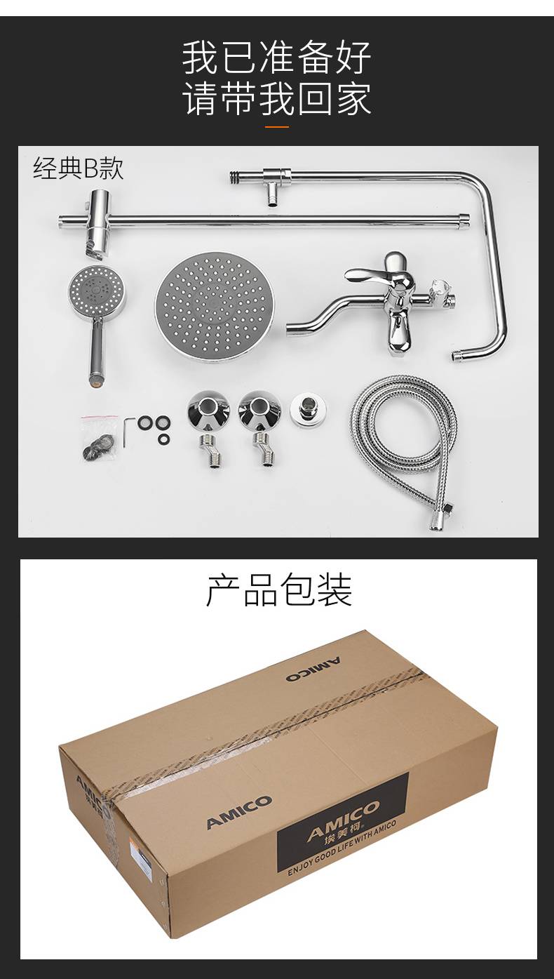 埃美柯amico 卫浴淋浴花洒套装家用全铜淋雨浴室冷热增压洗澡神器