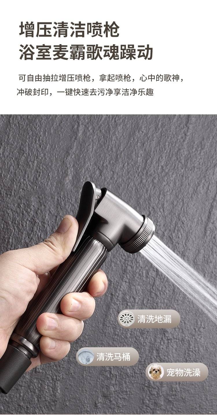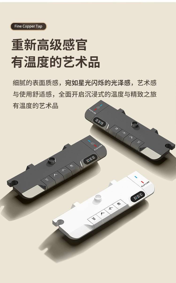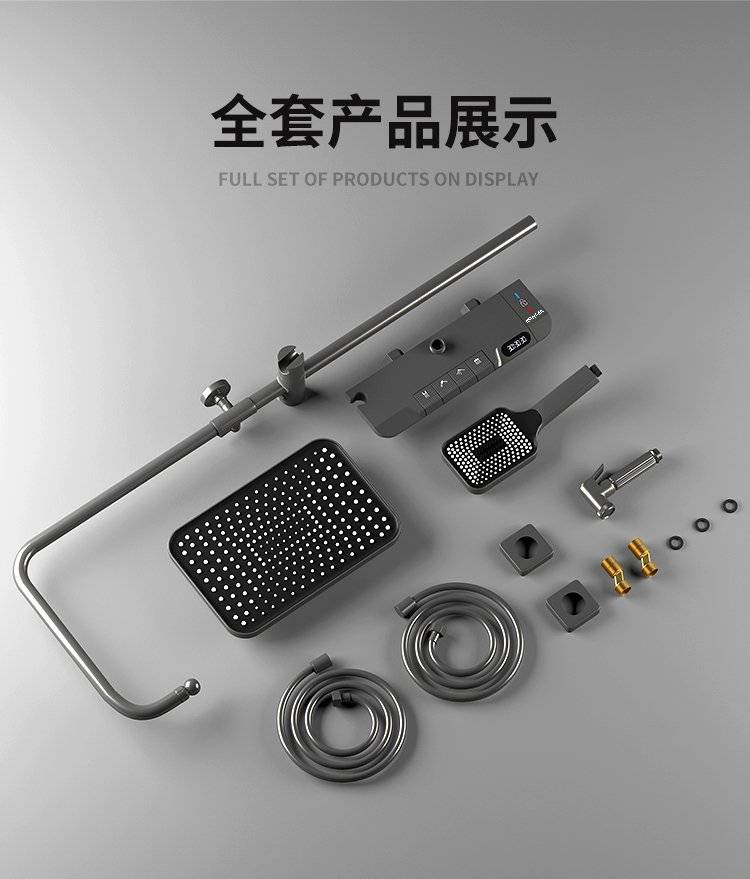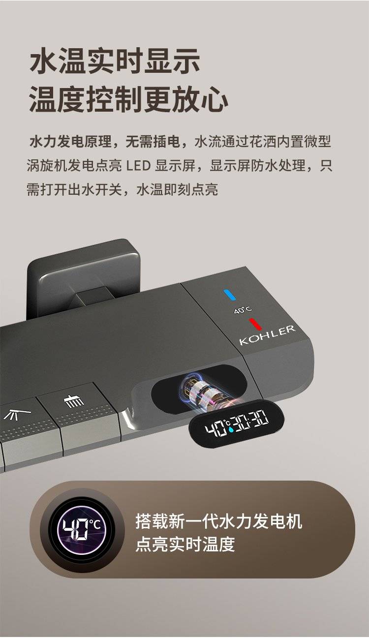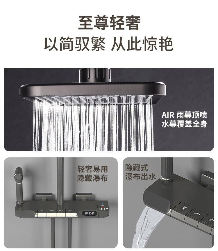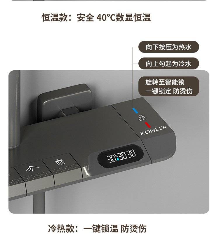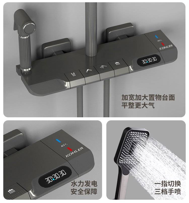 科勒卫浴淋浴花洒套装枪灰色全铜数显花洒钢琴增压家用沐浴器