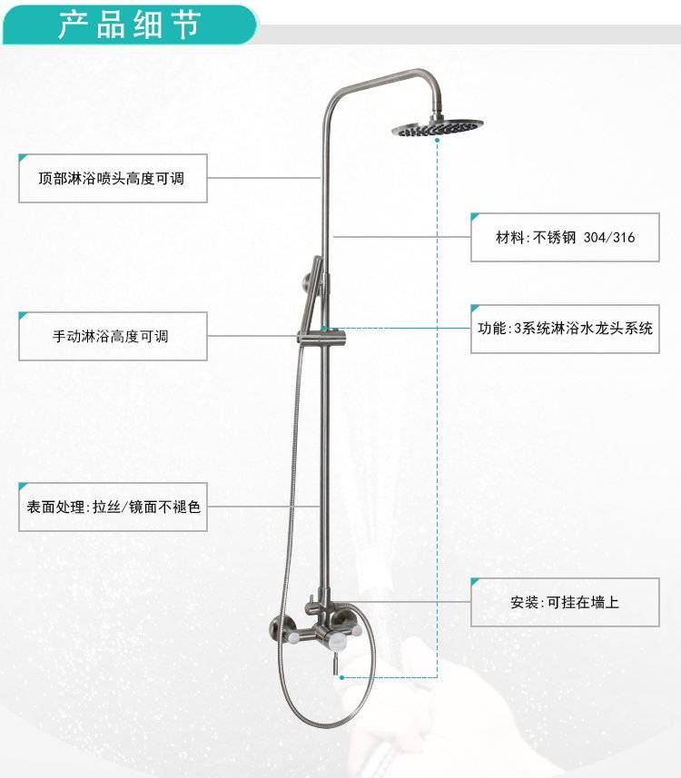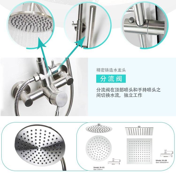 定制304不锈钢淋浴增压花洒套装 家用浴室淋浴器冷热 酒店工程