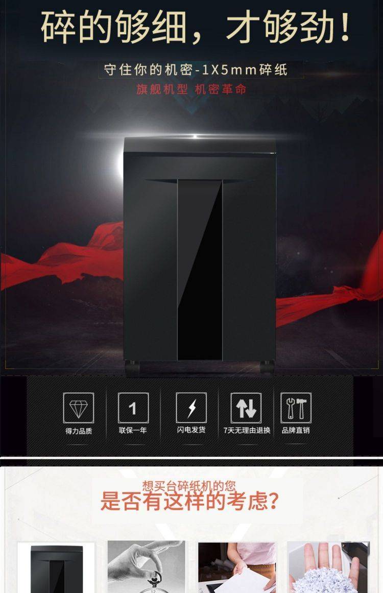 得力碎纸机办公家用商用大功率碎纸神器小型纸碎机迷你电动文件粉