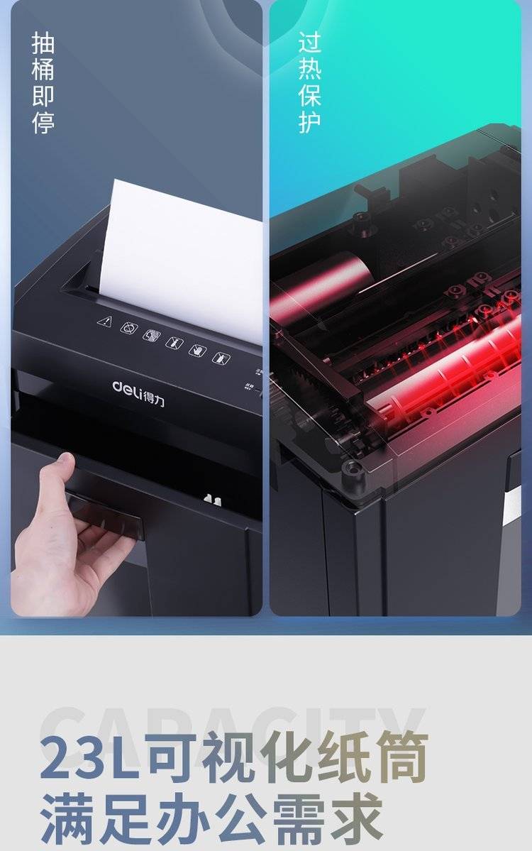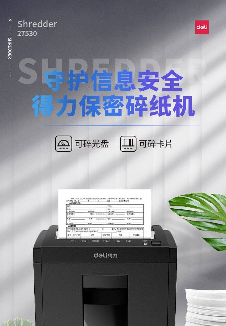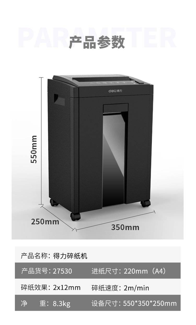 得力27530办公室碎纸机5级保密碎纸商用文件粉碎机大功率电动大型
