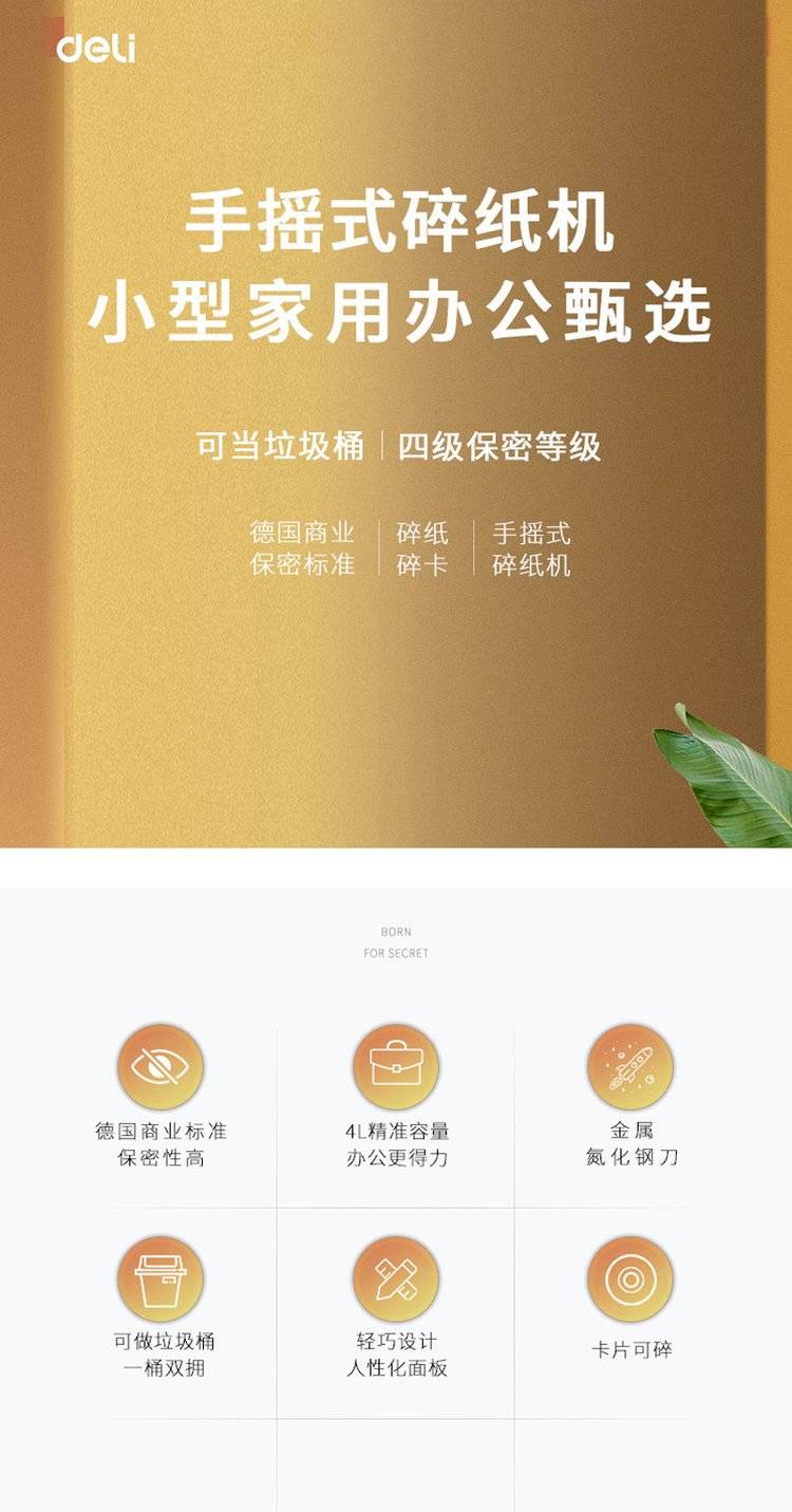 得力9935手动碎纸机小型迷你家用办公室便携碎卡碎光盘手摇粉碎机