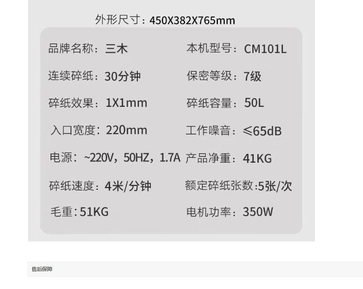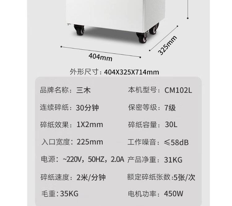 三木(SUNWOOD) 7级保密碎纸机可持续30分钟 50L大容量 CM101L