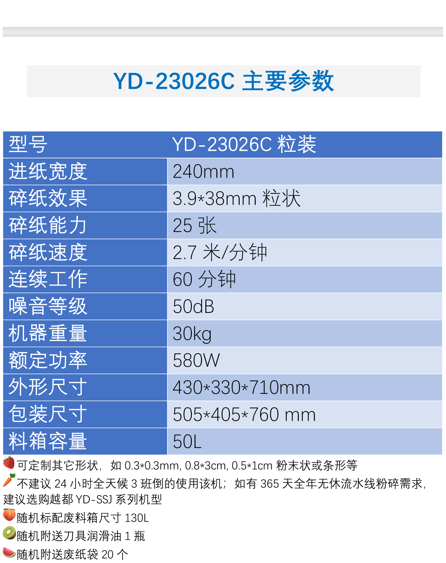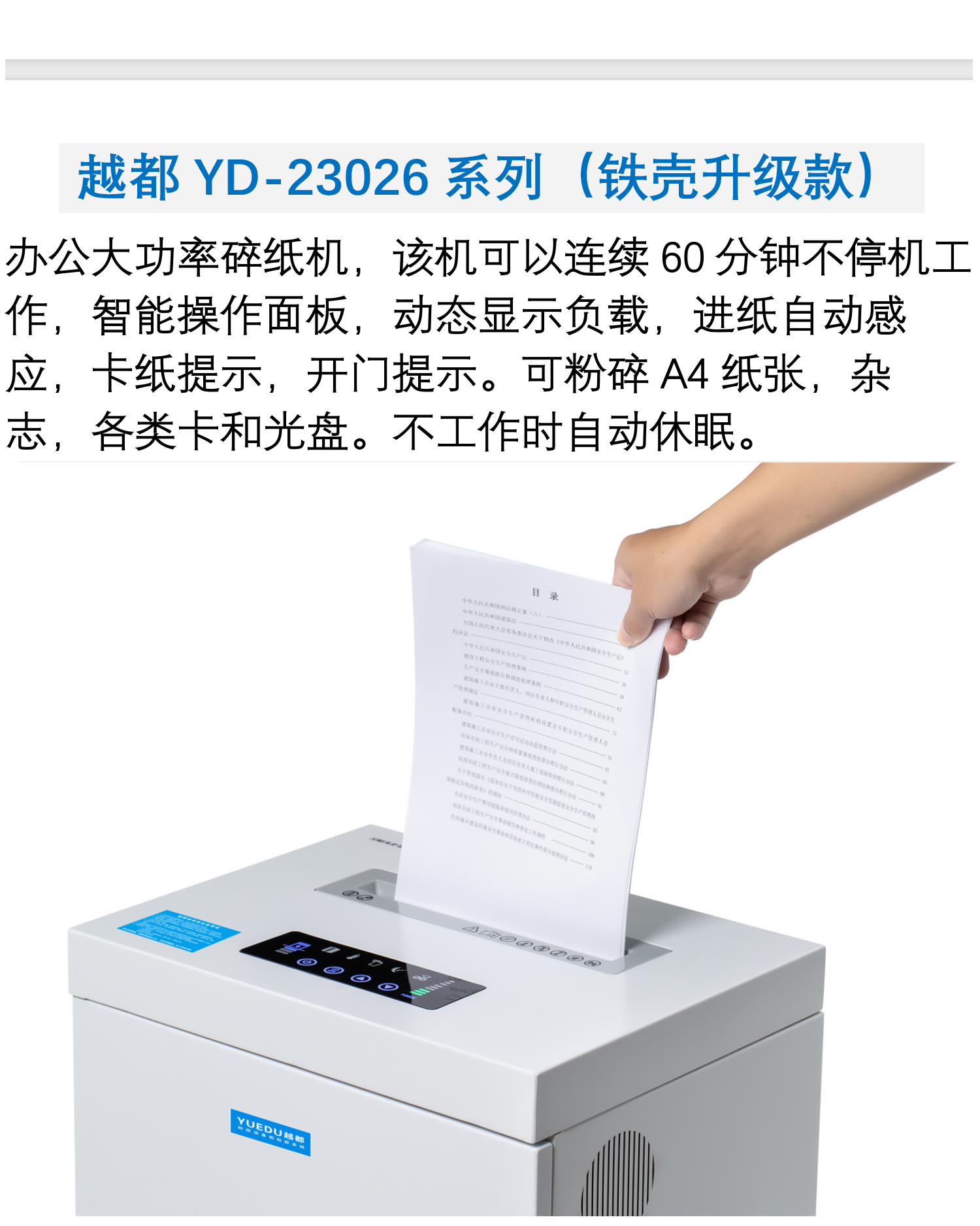 越都YD-23026C办公大功率碎纸机3.8*40mm颗粒状连续工作 碎卡机