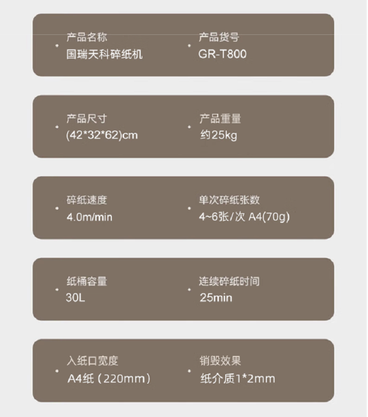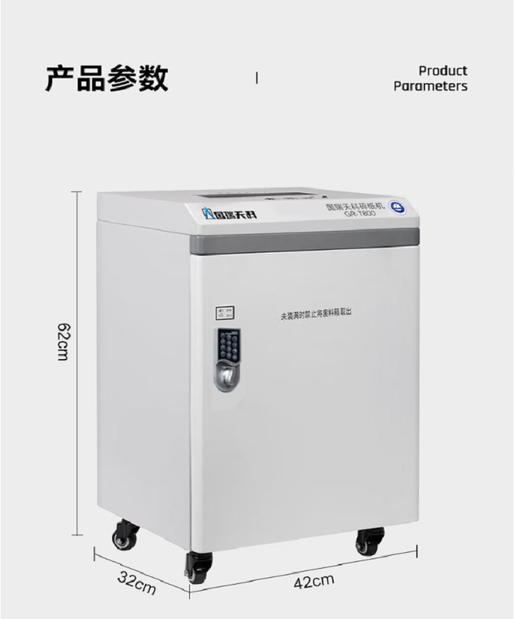 国瑞天科 GR-T800 高保密碎纸机 一级保密认证 文件销毁机 碎纸1*2mm