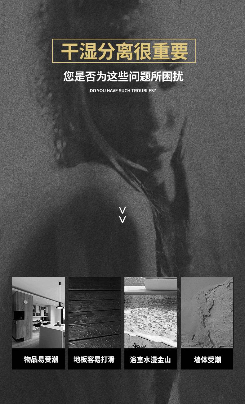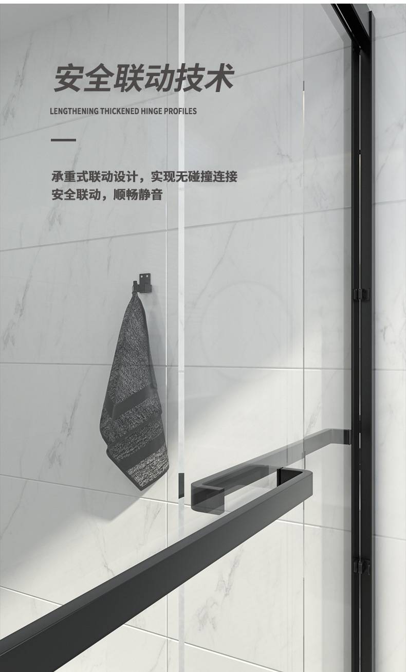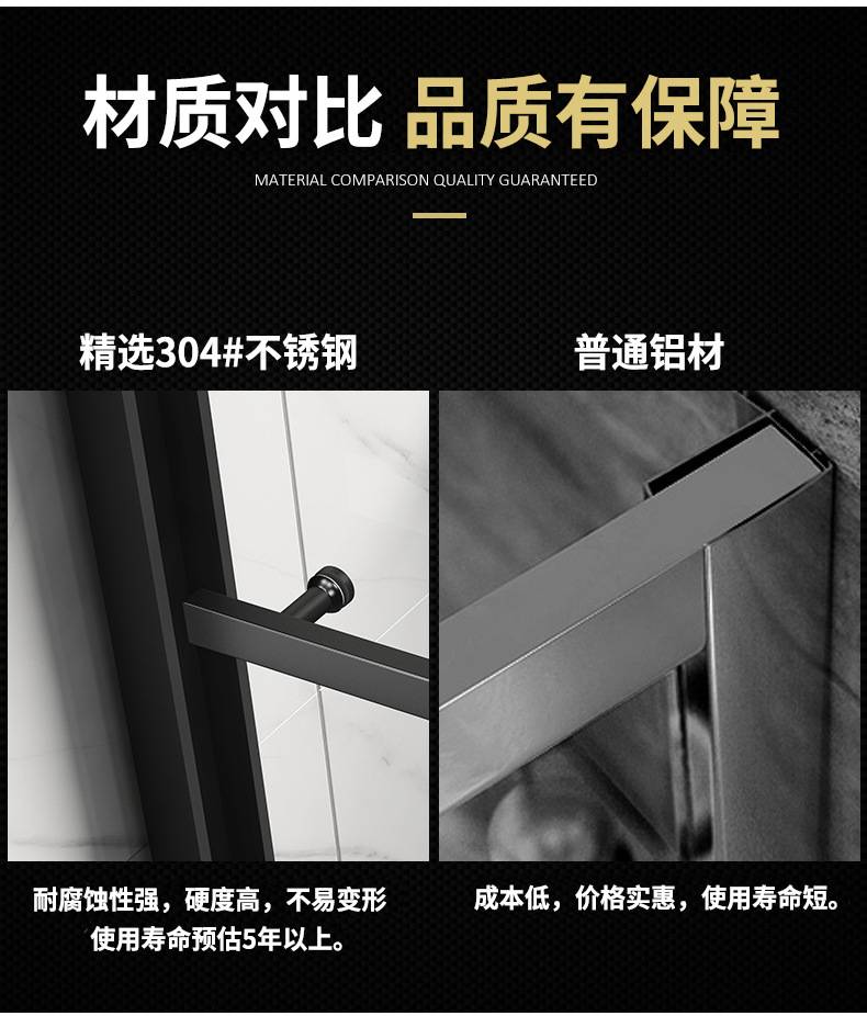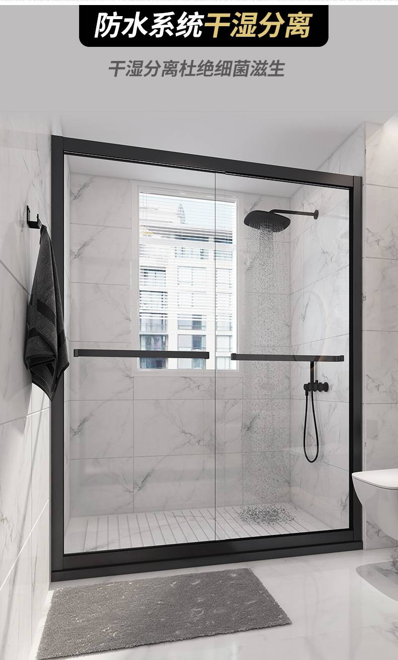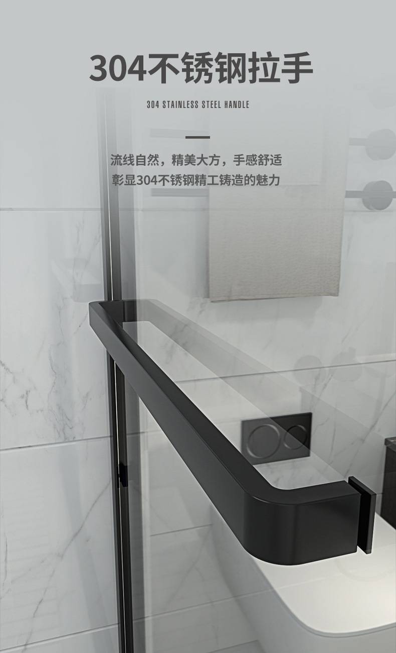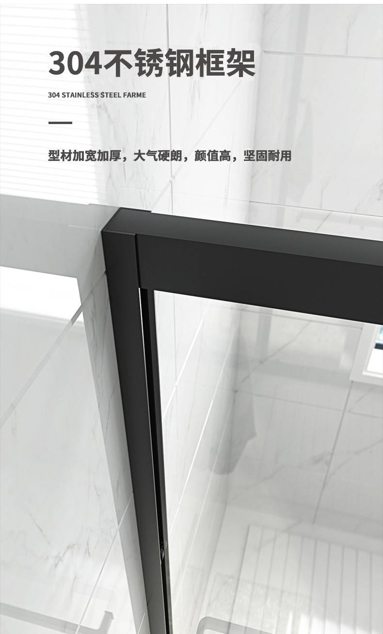 定制黑色简易淋浴房屏风干湿分离 一字形304不锈钢钢化玻璃隔断
