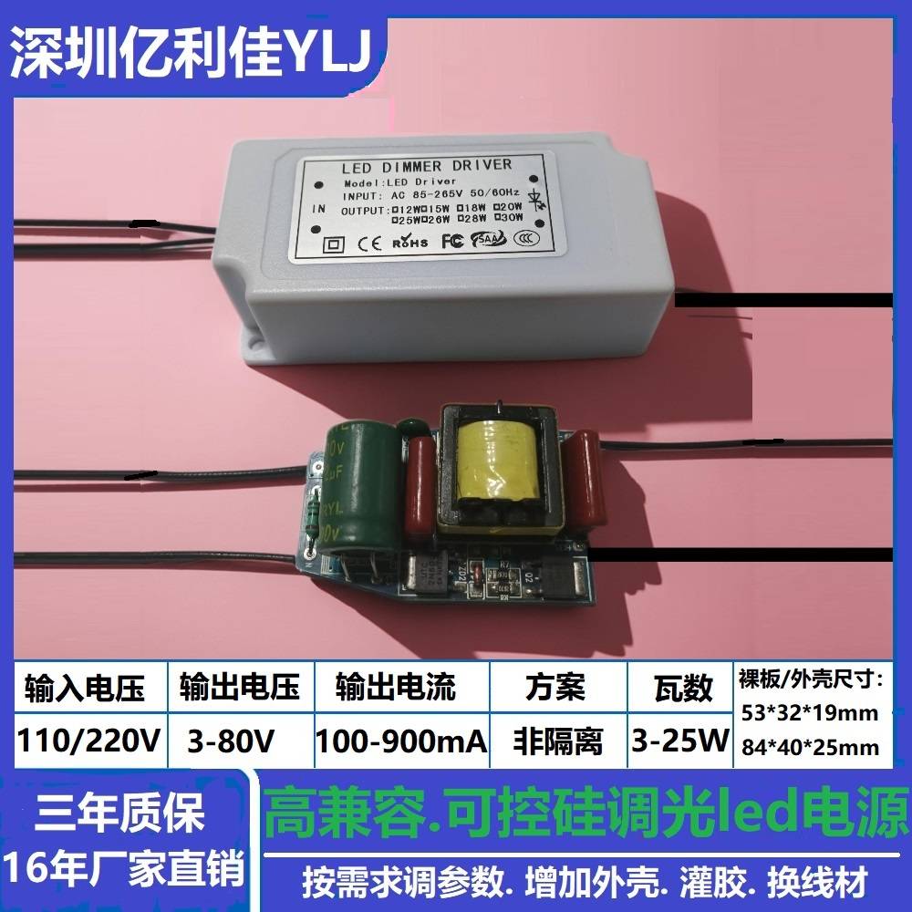 无频闪可控硅调光led电源 定制3瓦25W裸板外置恒流源 前后切调光器