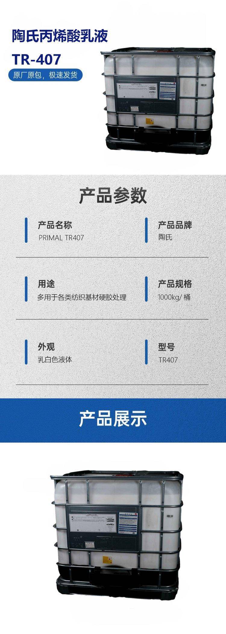 陶氏PRIMAL TR-407水性热塑型丙烯酸乳液特种树脂粘合剂软胶配合