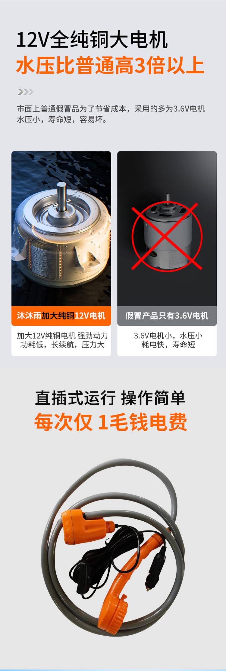 巨辰品牌USB充电便携式户外淋浴喷头车载直插式花洒