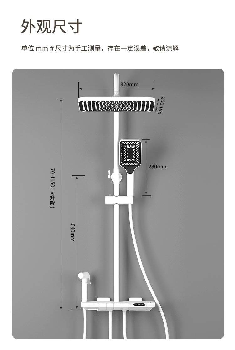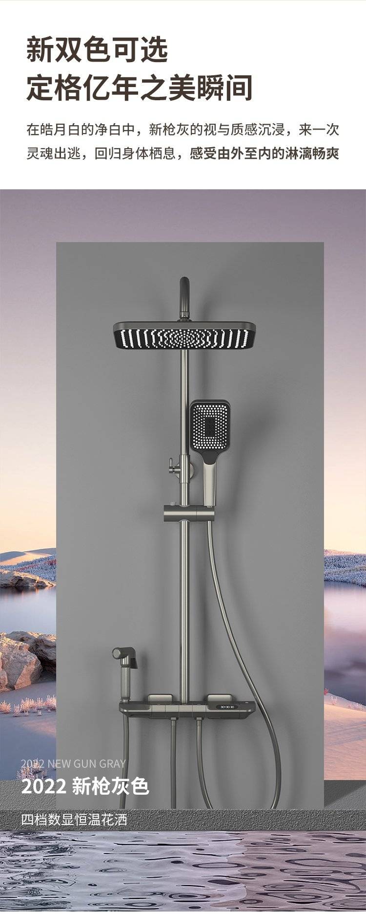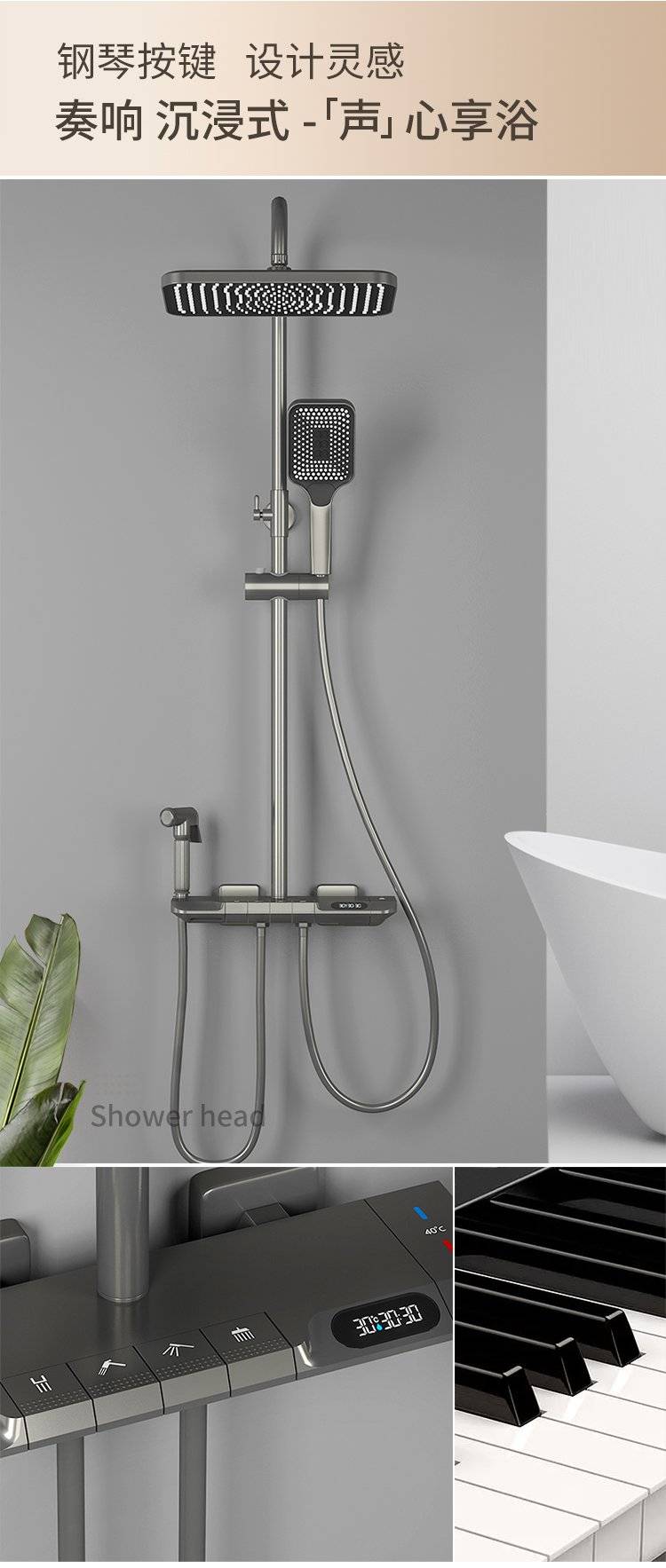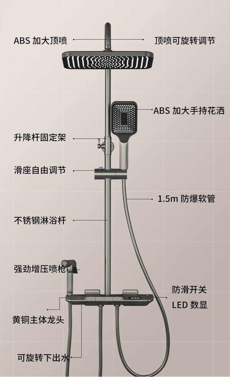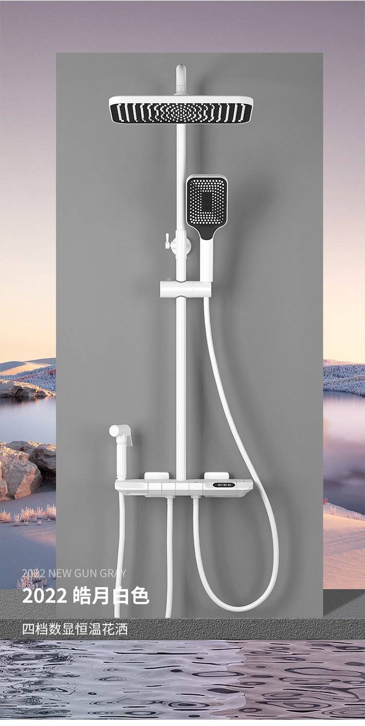 科勒卫浴淋浴花洒套装枪灰色全铜数显花洒钢琴增压家用沐浴器
