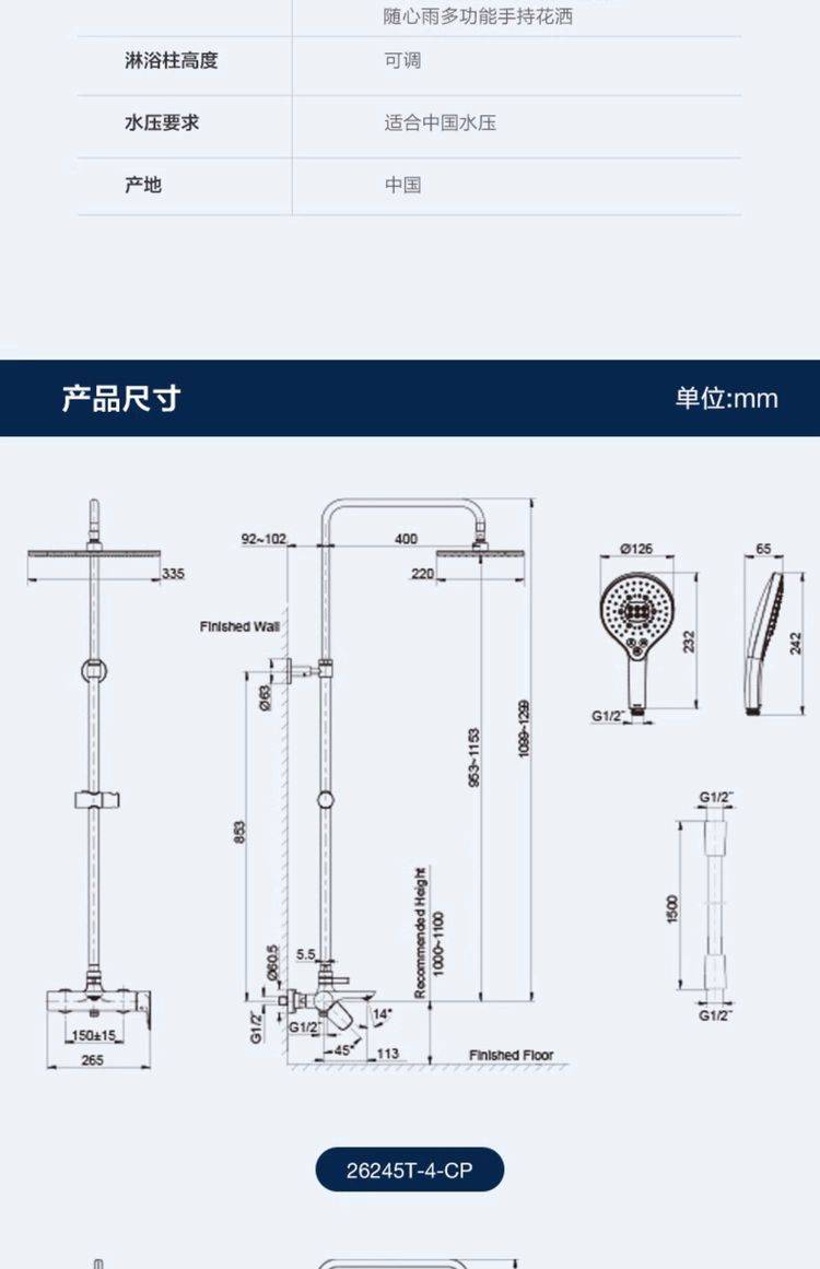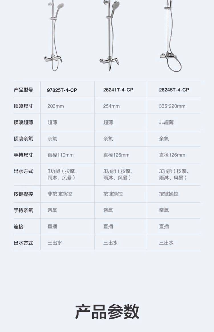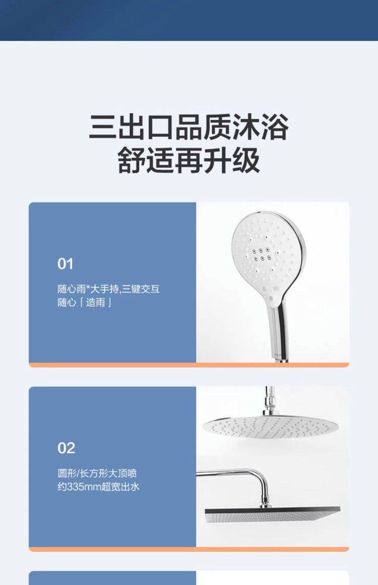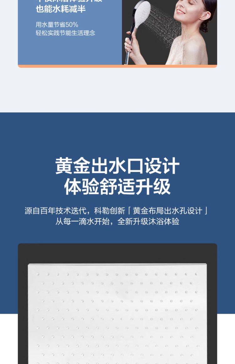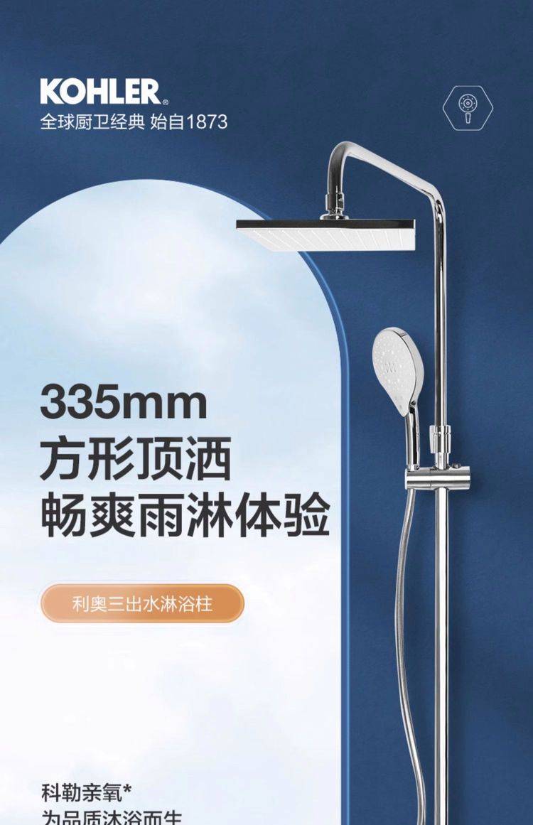 科勒利奥三出水家用卫生间淋浴花洒335mm顶喷方形头顶26241/26245