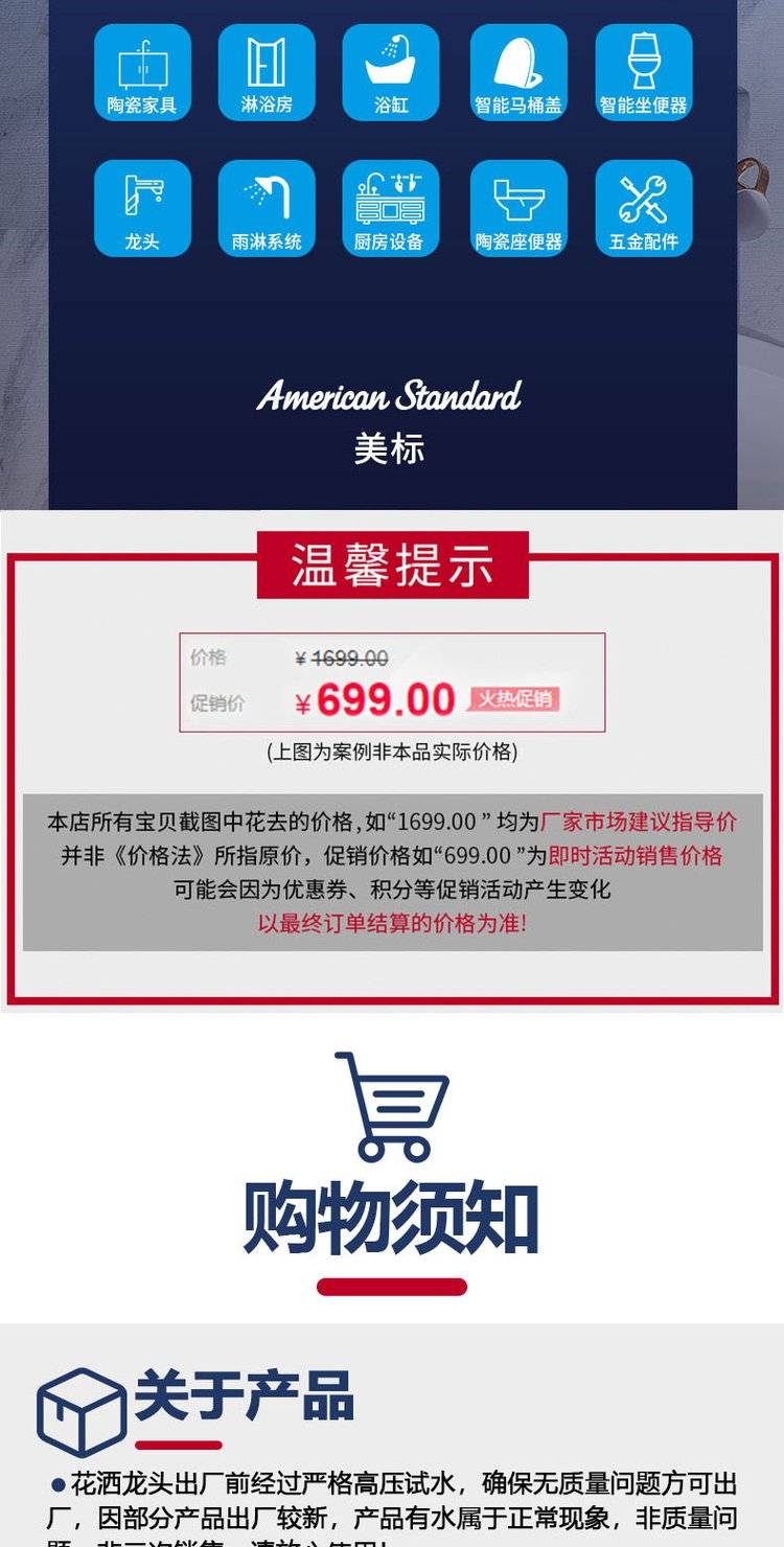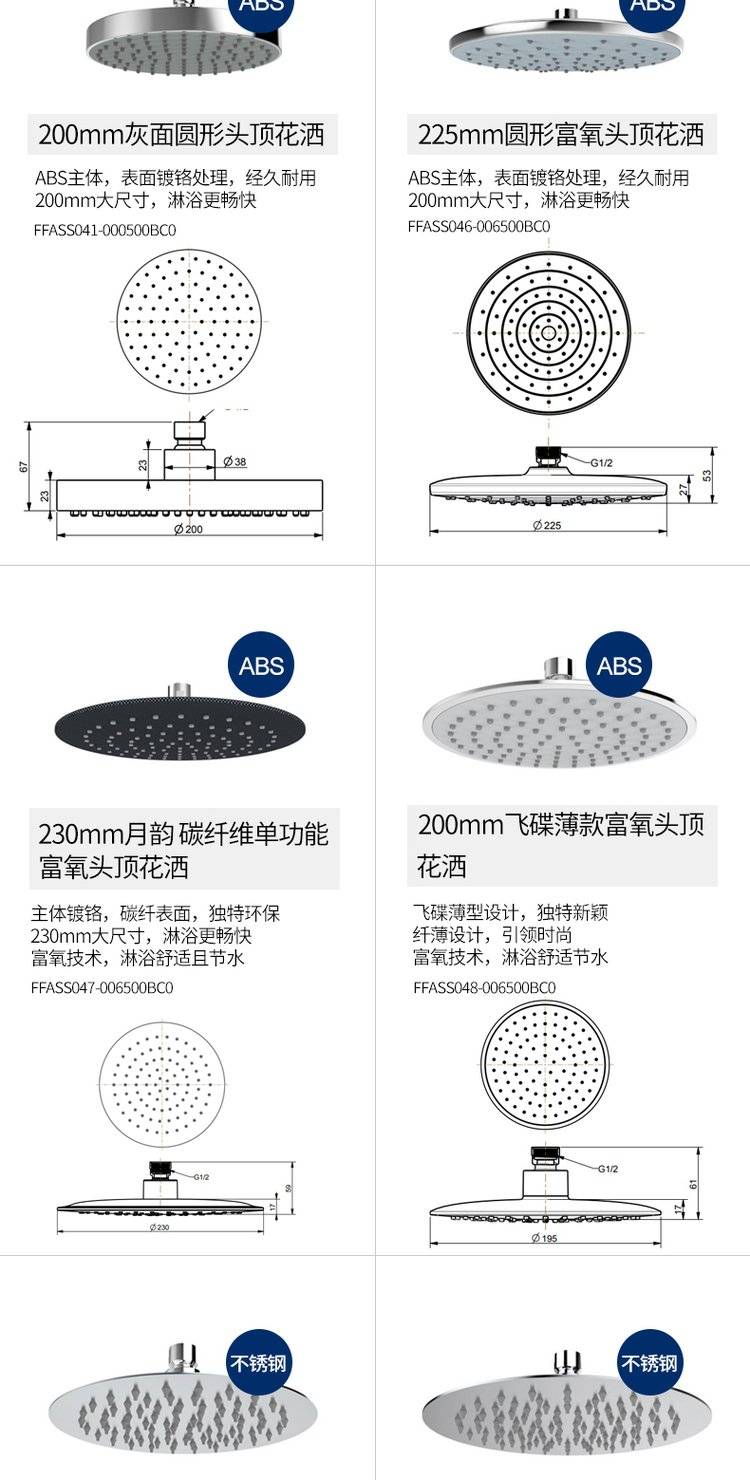 美标卫浴增压冷热淋浴头家用大花洒顶喷头头顶淋雨单头圆形顶洒